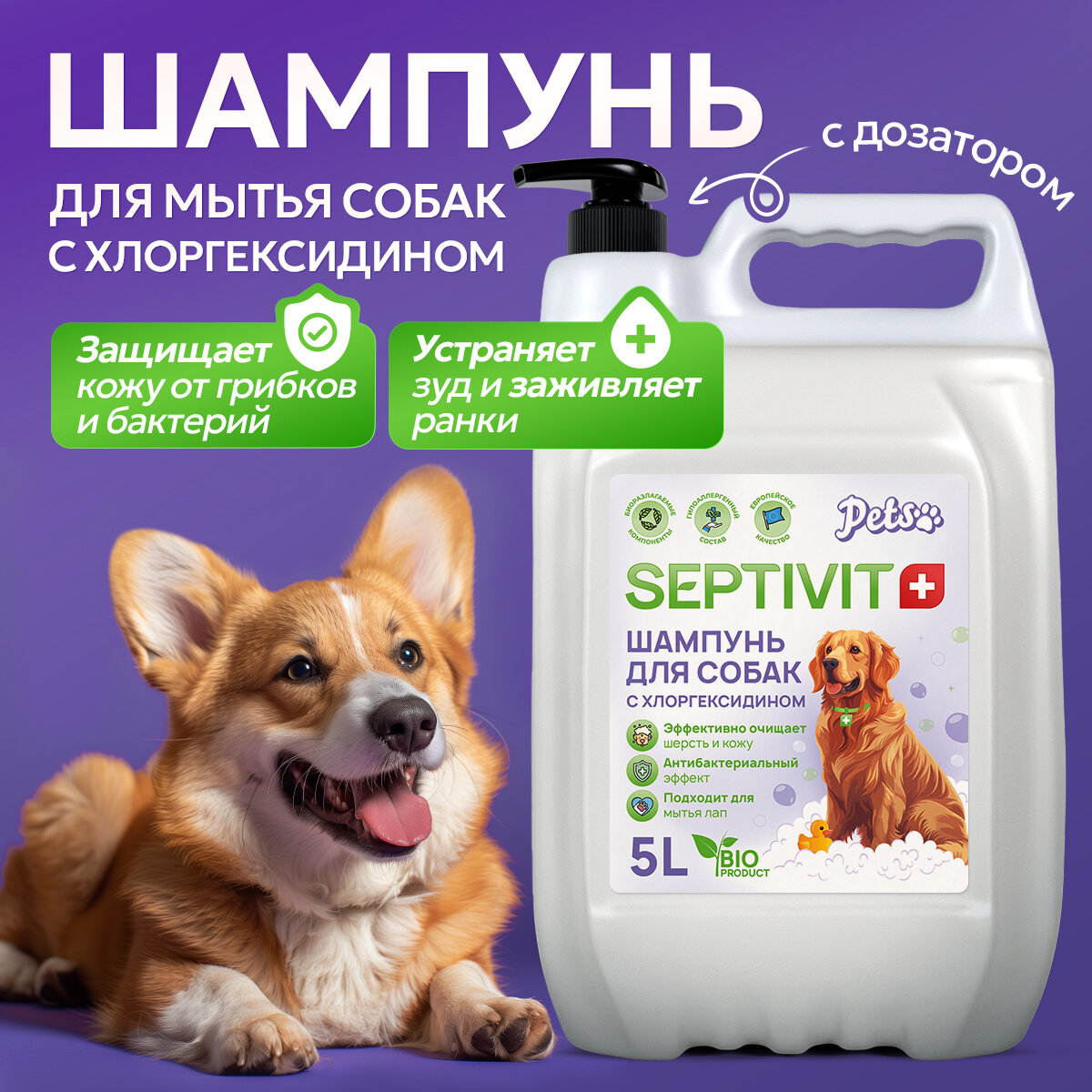 Шампунь для собак с хлоргексидином 5 л Septivit информация: