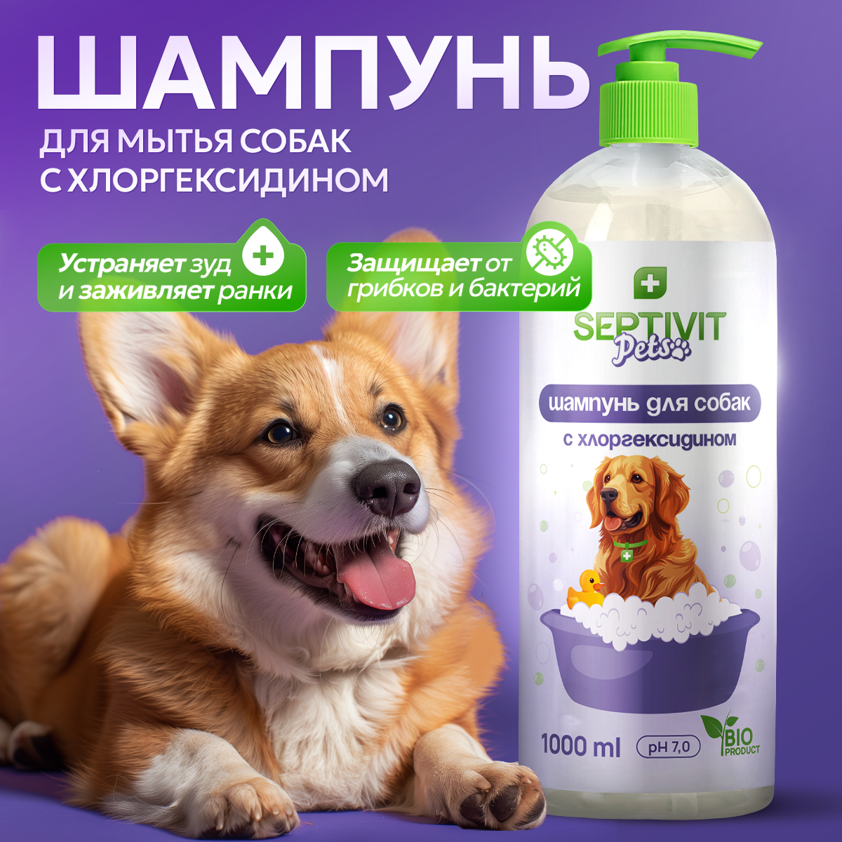 Шампунь для собак с хлоргексидином 1000мл Septivit информация: