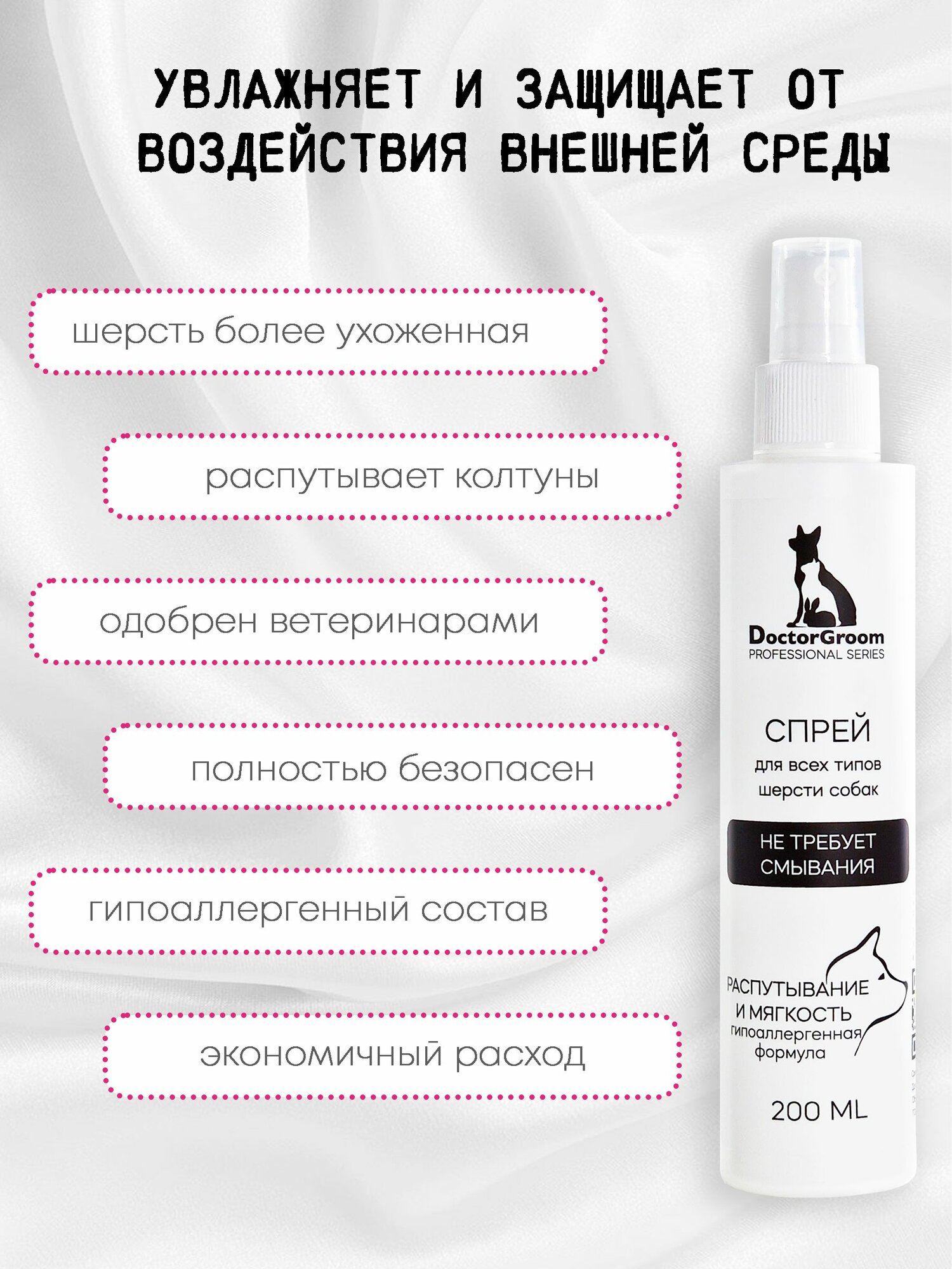 10 цен на Спрей от колтунов для шерсти собак Doctor Groom. Для легкого расчесывания, снятия статики и увлажнения шерсти. Для всех пород, 200 мл