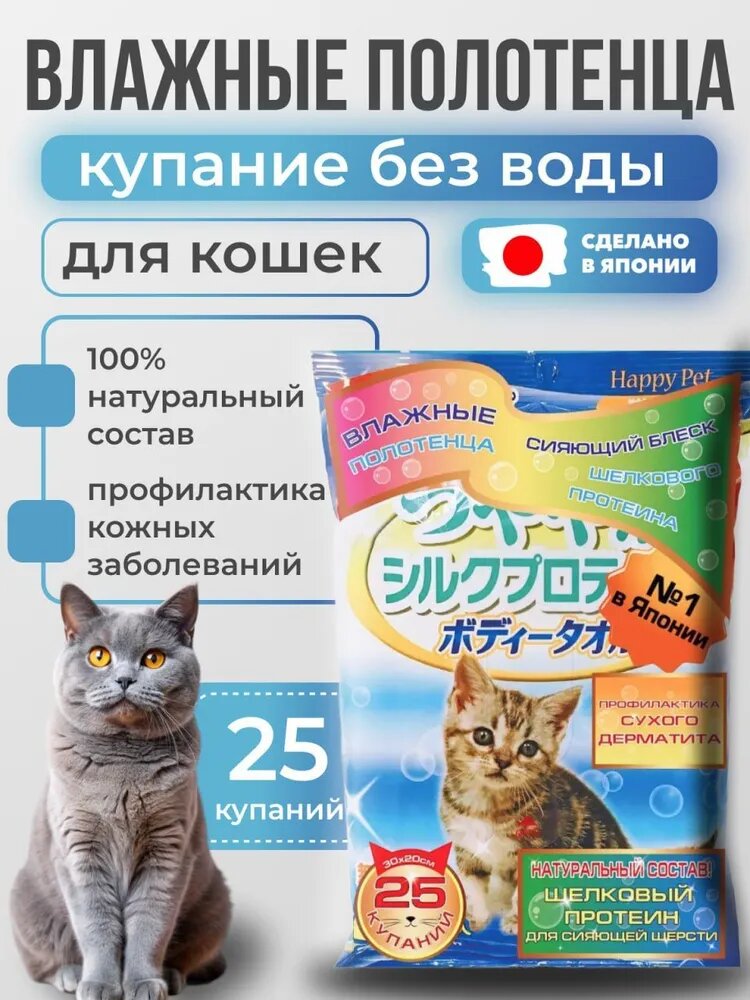 Отзывы на Шампуневые полотенца Japan Premium Pet купание без воды с функцией профилактики аллергии и дерматита для кошек, 25 шт