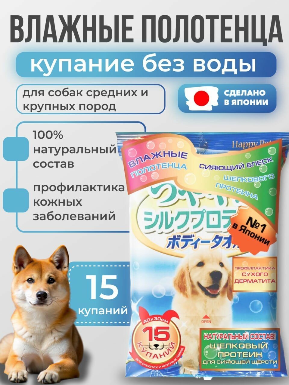 Отзывы на Шампуневые полотенца Japan Premium Pet экспресс-купание без воды с функцией профилактики кожной аллергии и сухого дерматита с шелковым протеином и экстрактом меда для крупных собак, 15 шт