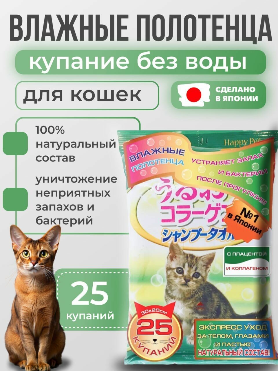 10 цен на Шампуневые полотенца Japan Premium Pet экспресс-купание без воды с коллагеном и плацентой для кошек, 25 шт