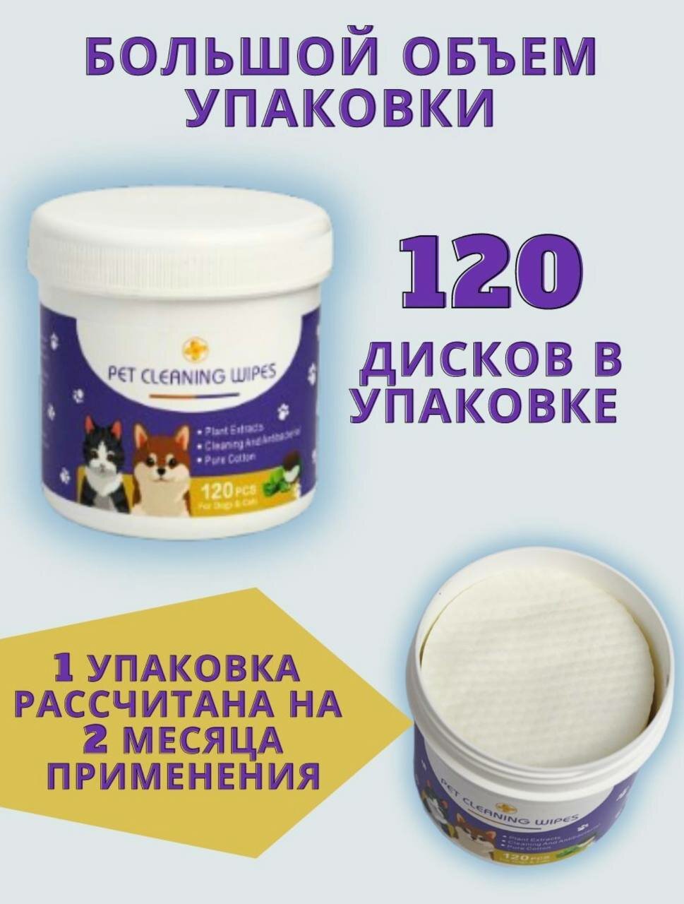Отзывы на Влажные диски для чистки глаз, ушей, носа собак и кошек, антибактериальные