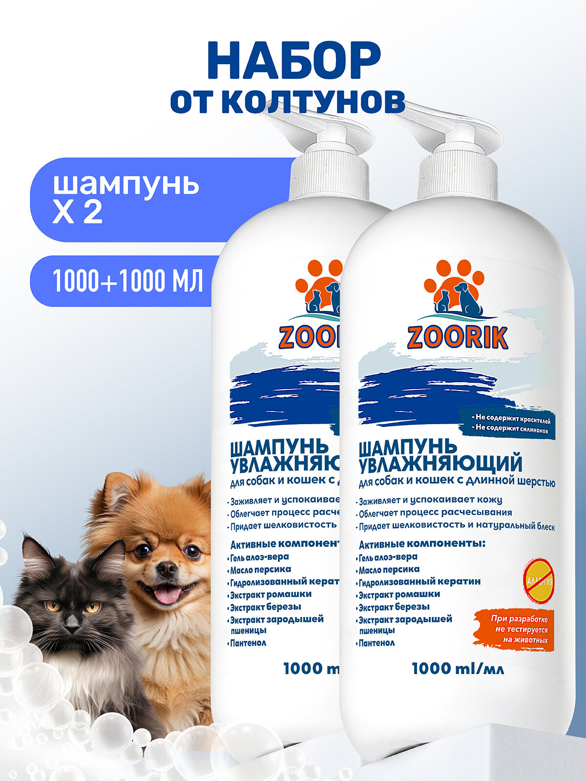 10 цен на Шампунь для длинной шерсти / ZOORIK / Зурик / увлажняющий 1000 мл - 2 шт