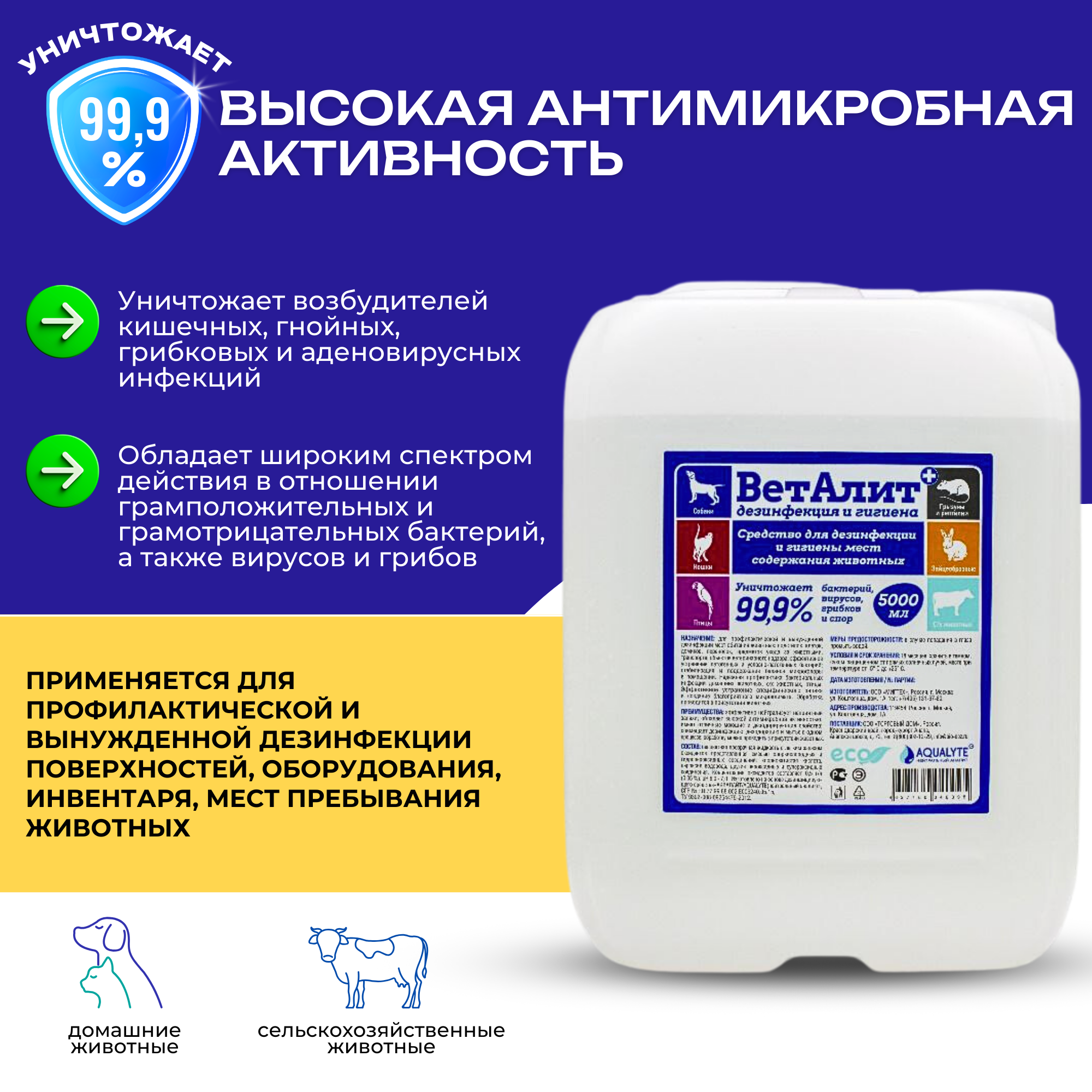 Средство «ВетАлит» для дезинфекции мест содержания животных и предметов ухода за ними, 5 л информация: