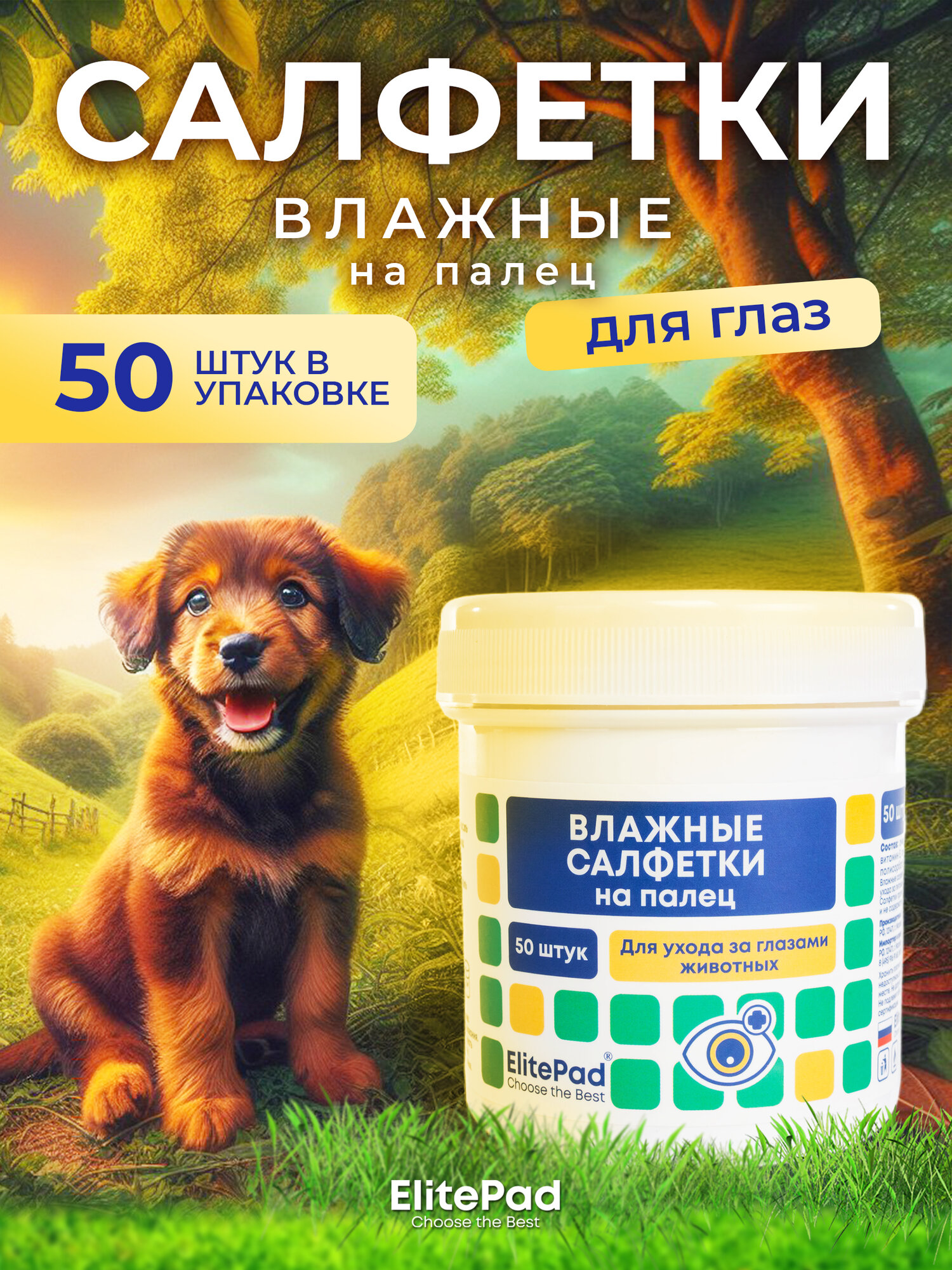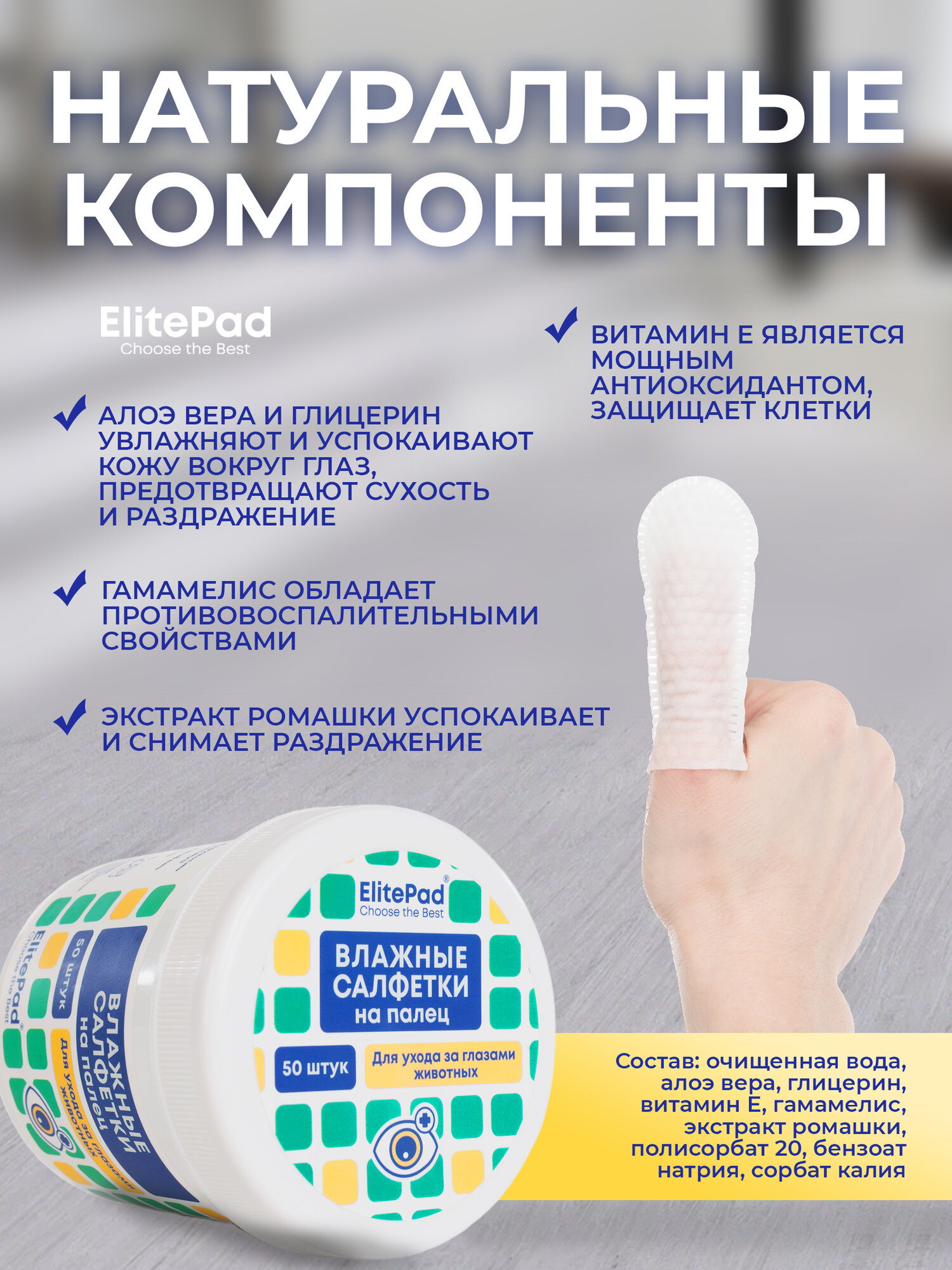 ELITEPAD Влажные салфетки на палец для очищения глаз животных, 50шт информация: