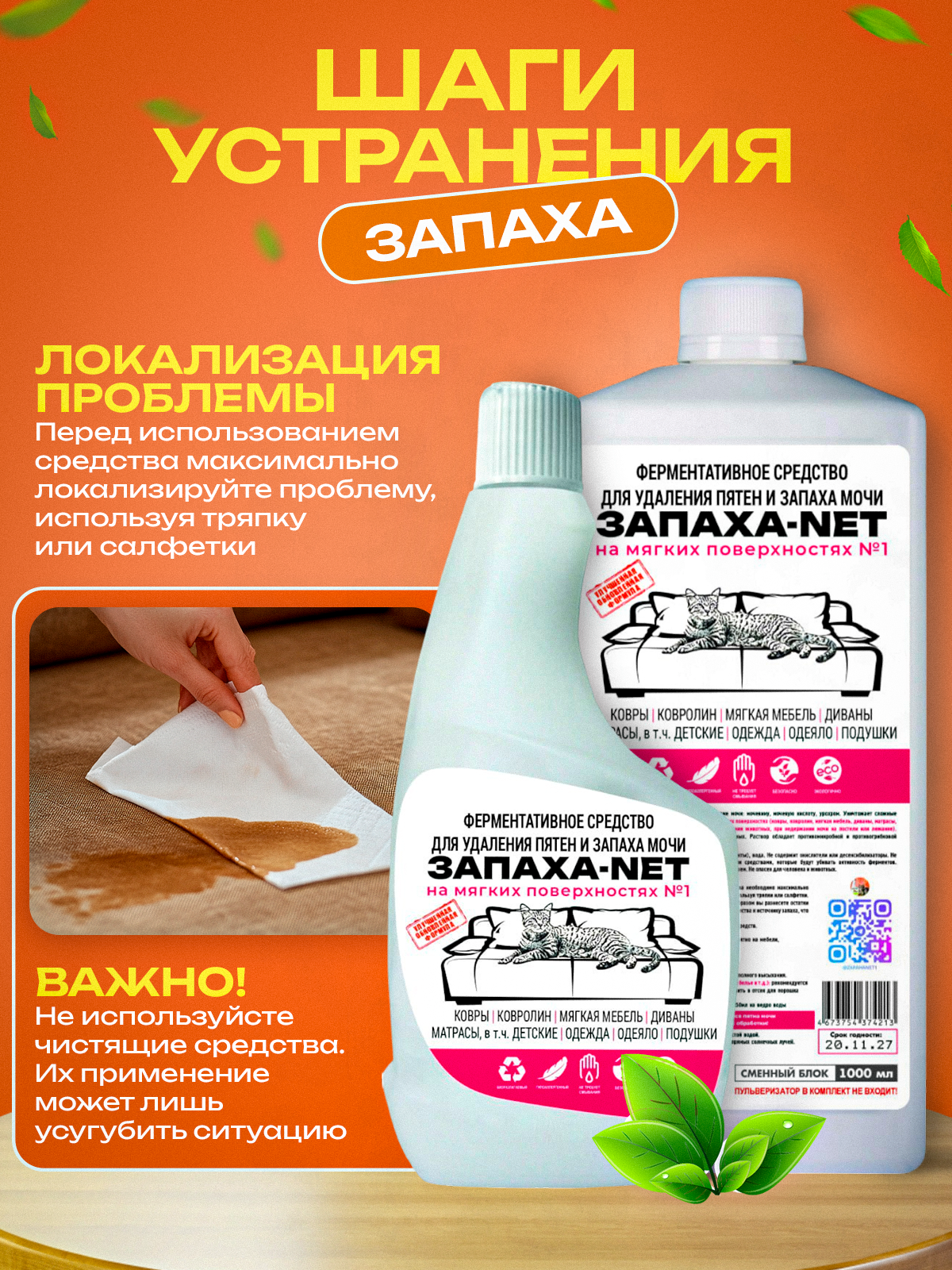 Нейтрализатор запаха кошачьей мочи для мягкой мебели и ковров. ЗАПАХА-NET Уничтожитель, ликвидатор запаха мочи . информация: