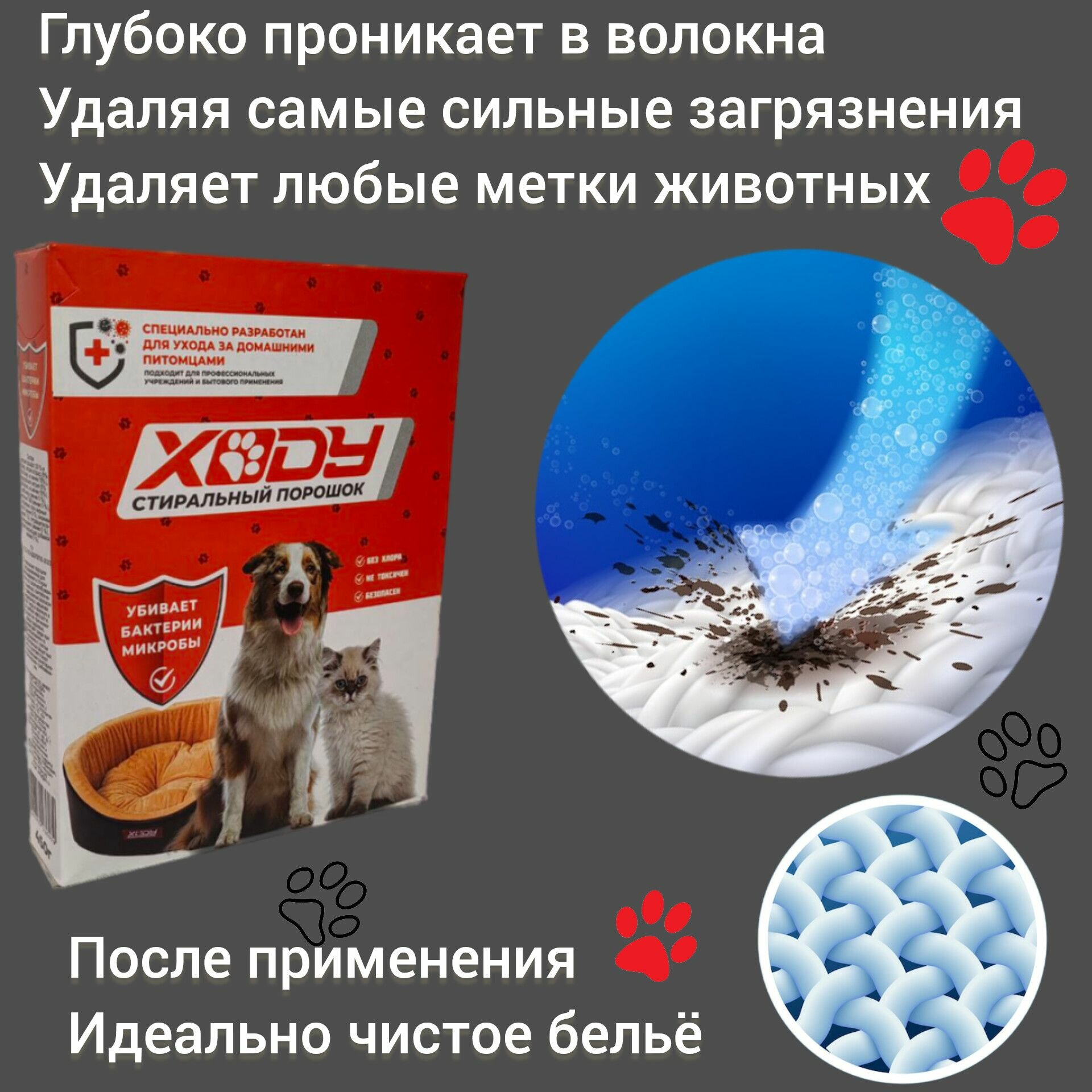 XODY/Стиральный порошок/ устраняет органические загрязнения и запахи домашних животных. XODY, 450гр информация: