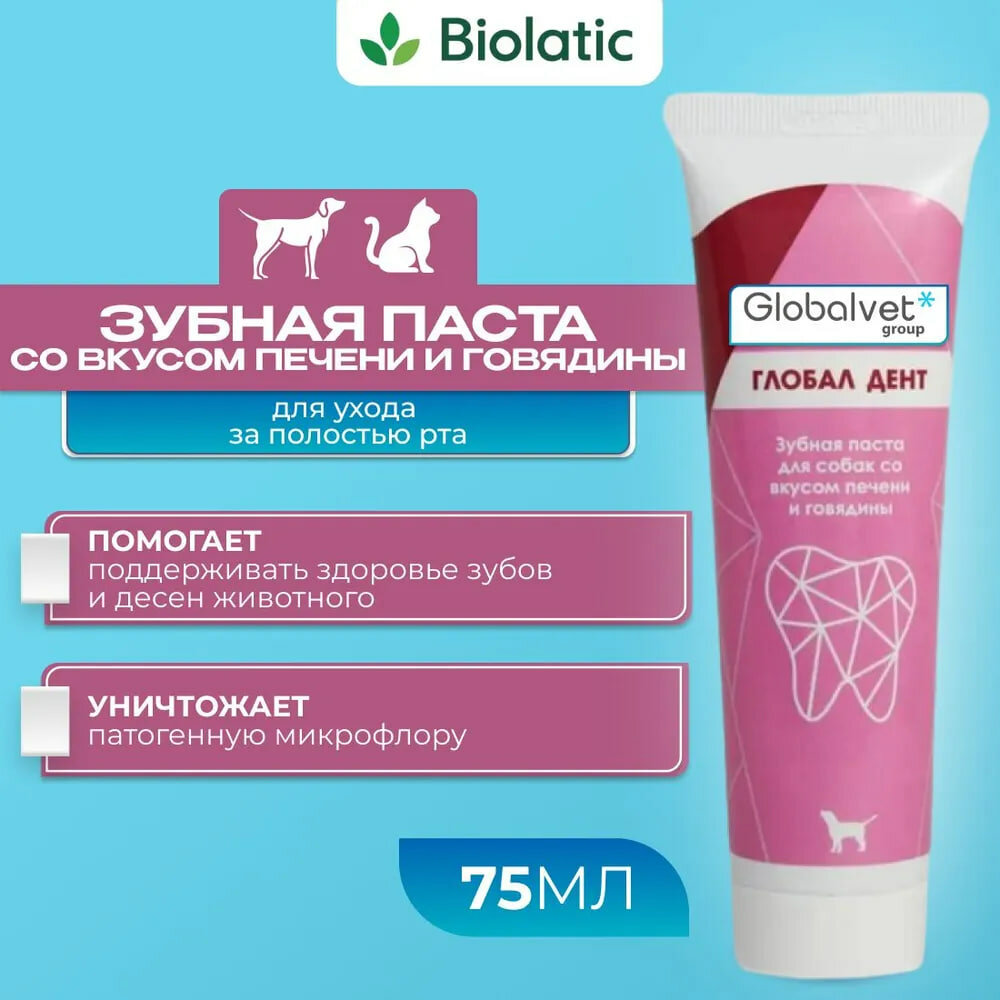 Глобал-вет Зубная паста для собак и кошек ферментированная со вкусом печени/говядины, 75 мл информация: