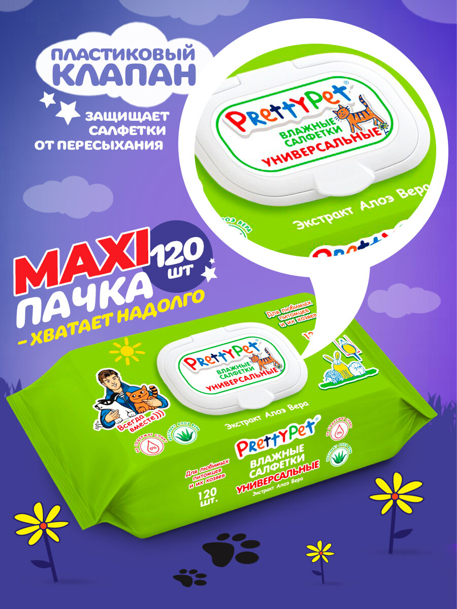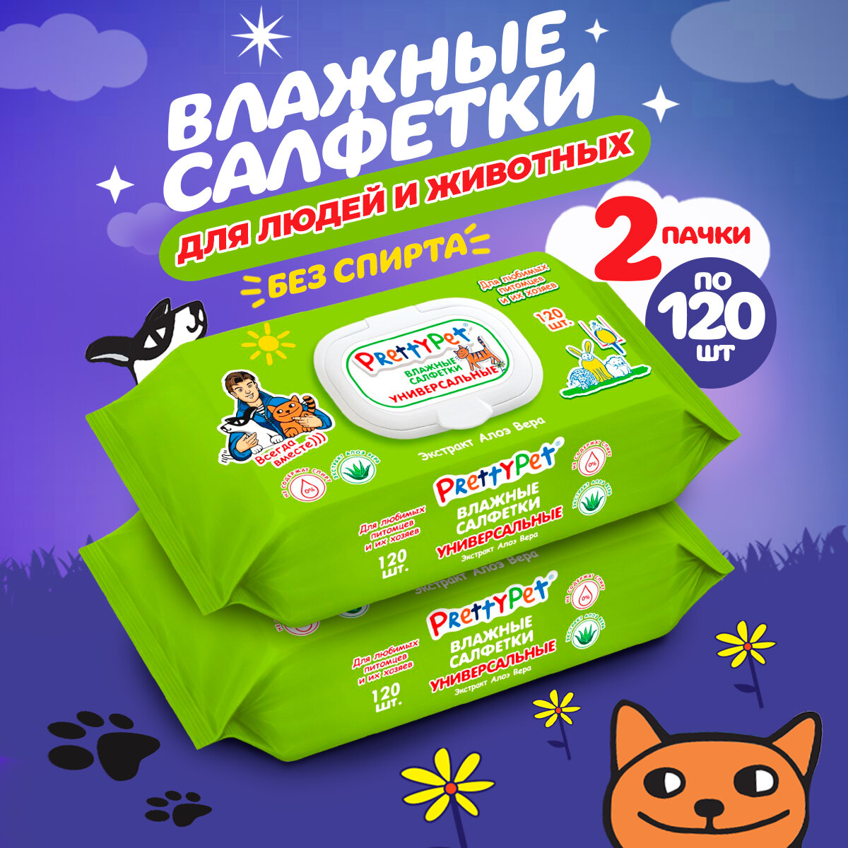10 цен на Влажные универсальные салфетки для животных и их хозяев с Алоэ 2х120 шт