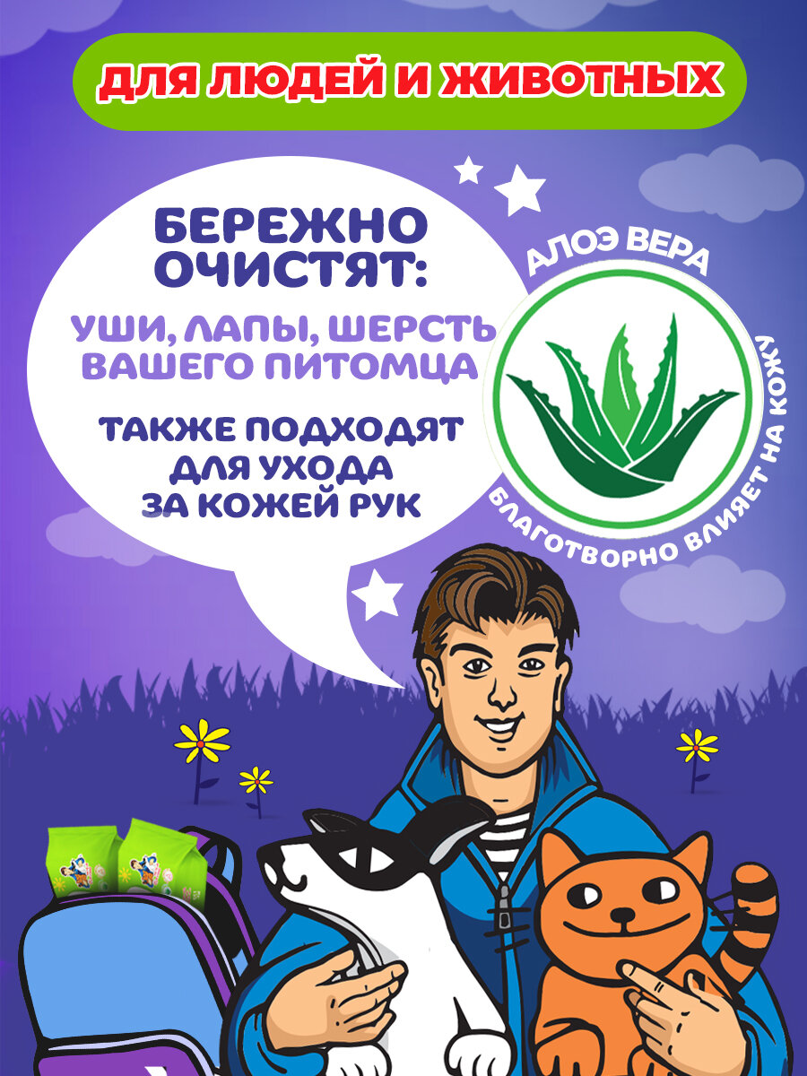 Отзывы на Влажные универсальные салфетки для животных и их хозяев с Алоэ 2х120 шт