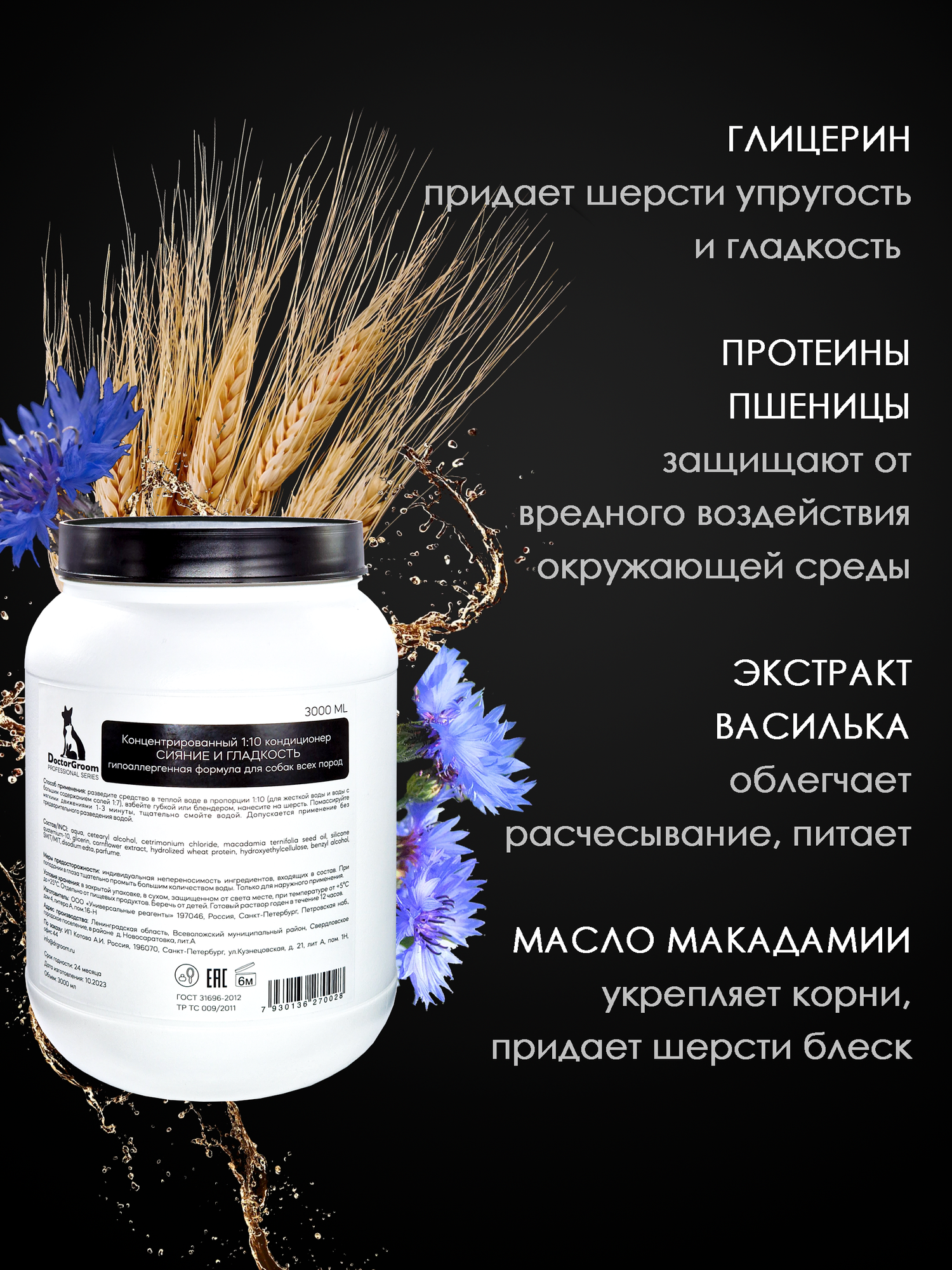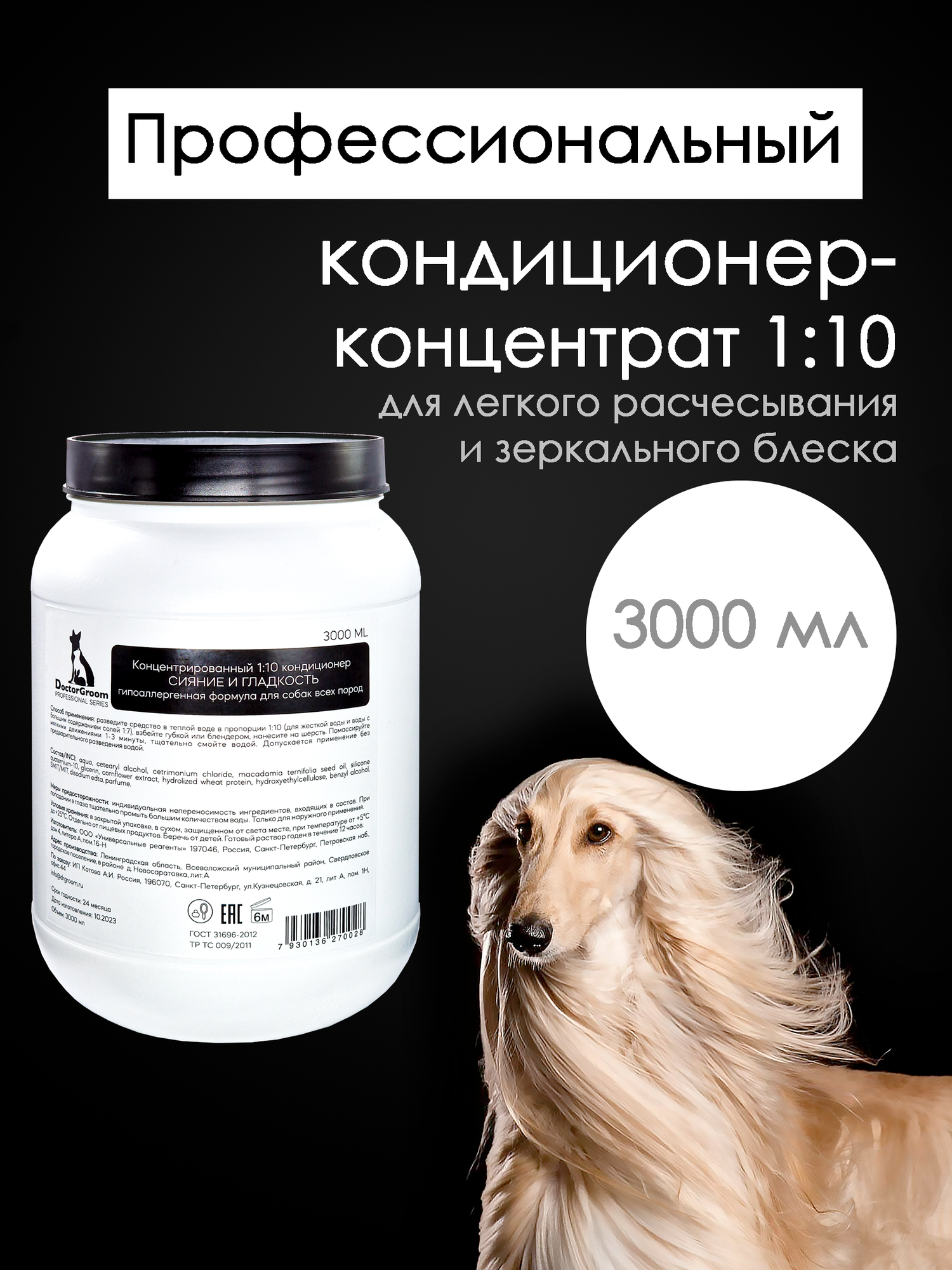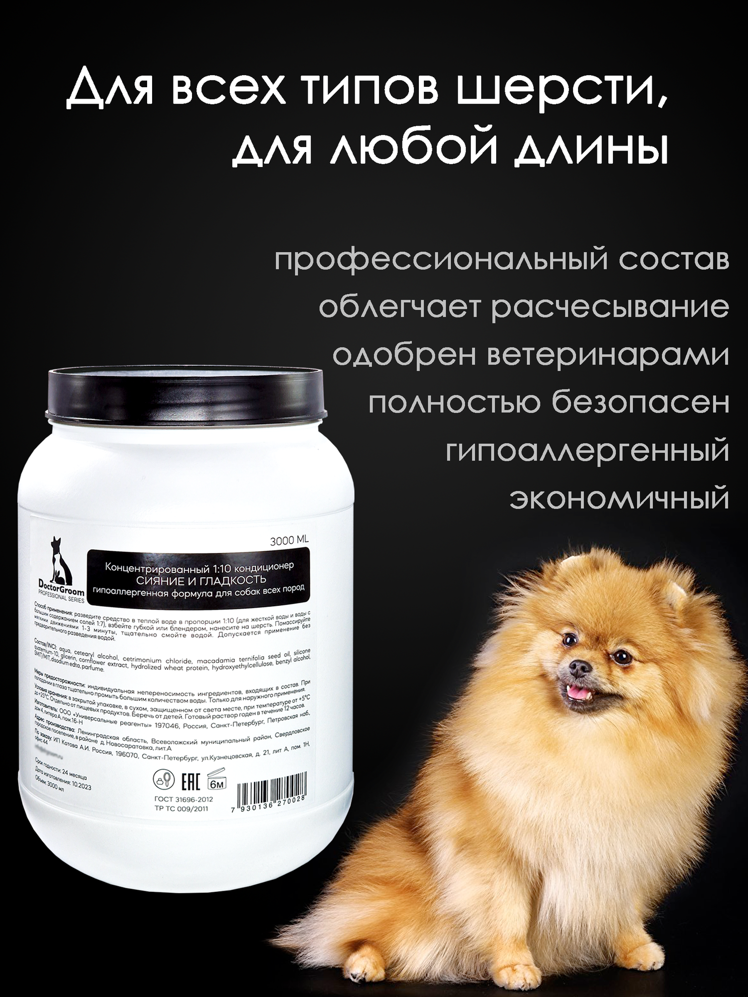 Концентрированный профессиональный кондиционер для шерсти собак всех пород Doctor Groom, бальзам для шерсти 3л информация: