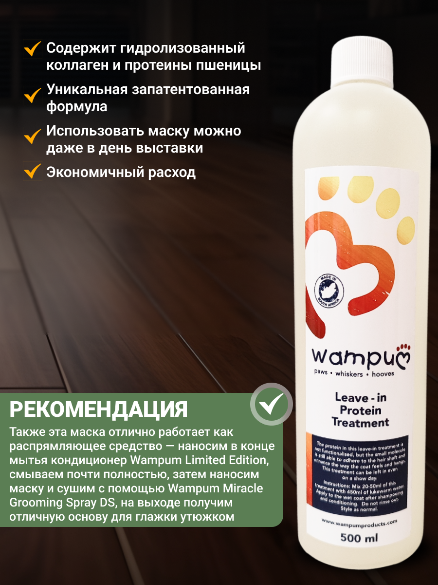 10 цен на Несмываемая протеиновая маска для шерсти Wampum (Leave-in Protein Treatment), 500 мл