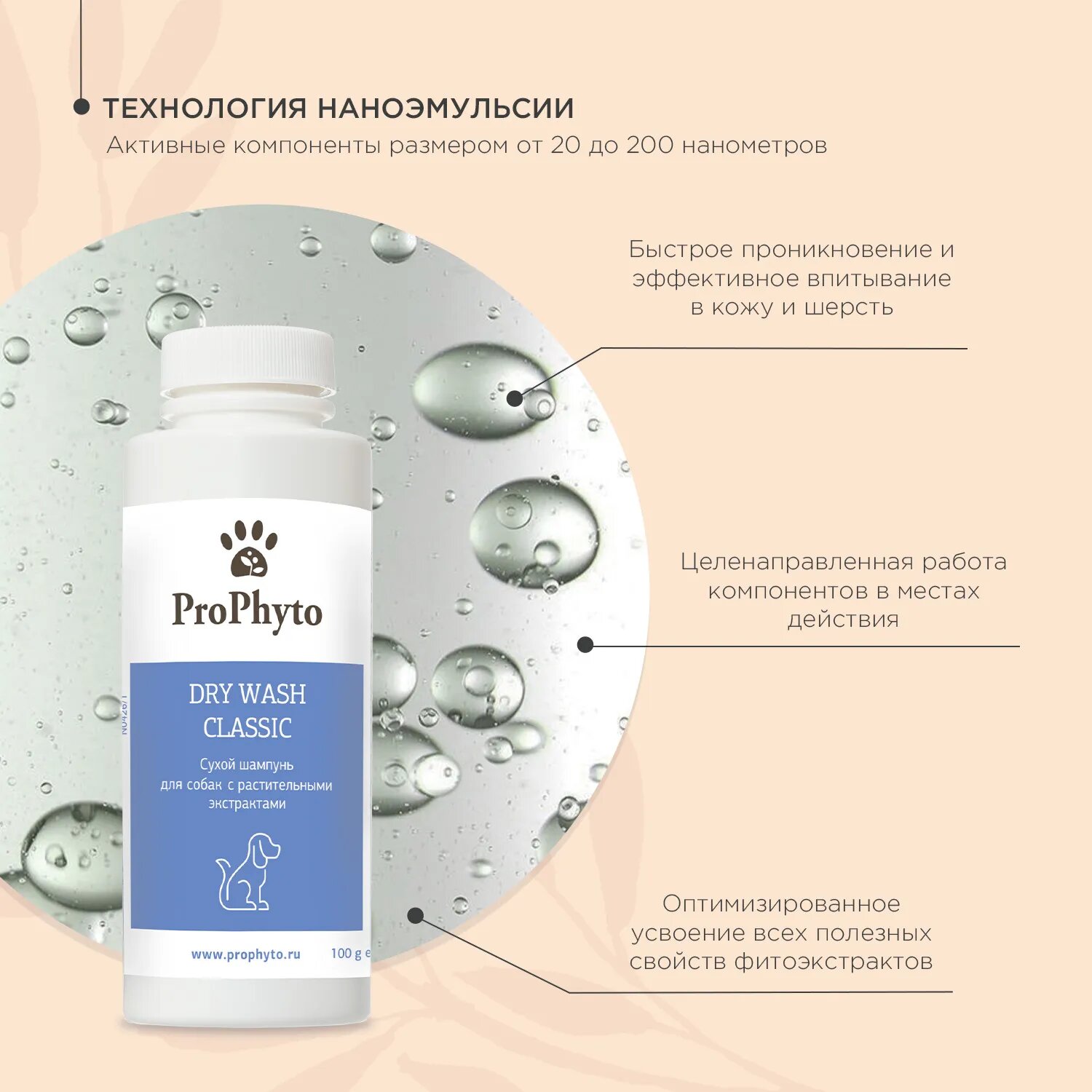10 цен на Сухой шампунь ProPhyto DRY WASH CLASSIC (порошок) для блеска и мягкости шерсти собак, 100 г