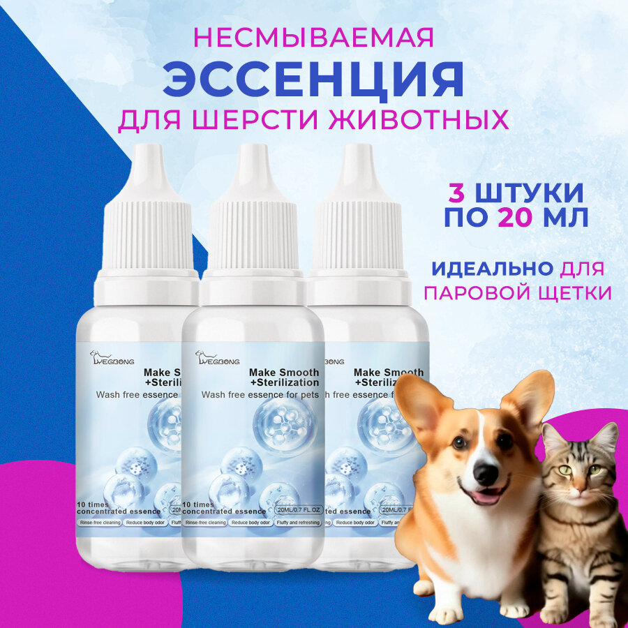 Эссенция для паровой щетки для кошек и собак для блеска и мягкости шерсти, 3 штуки информация: