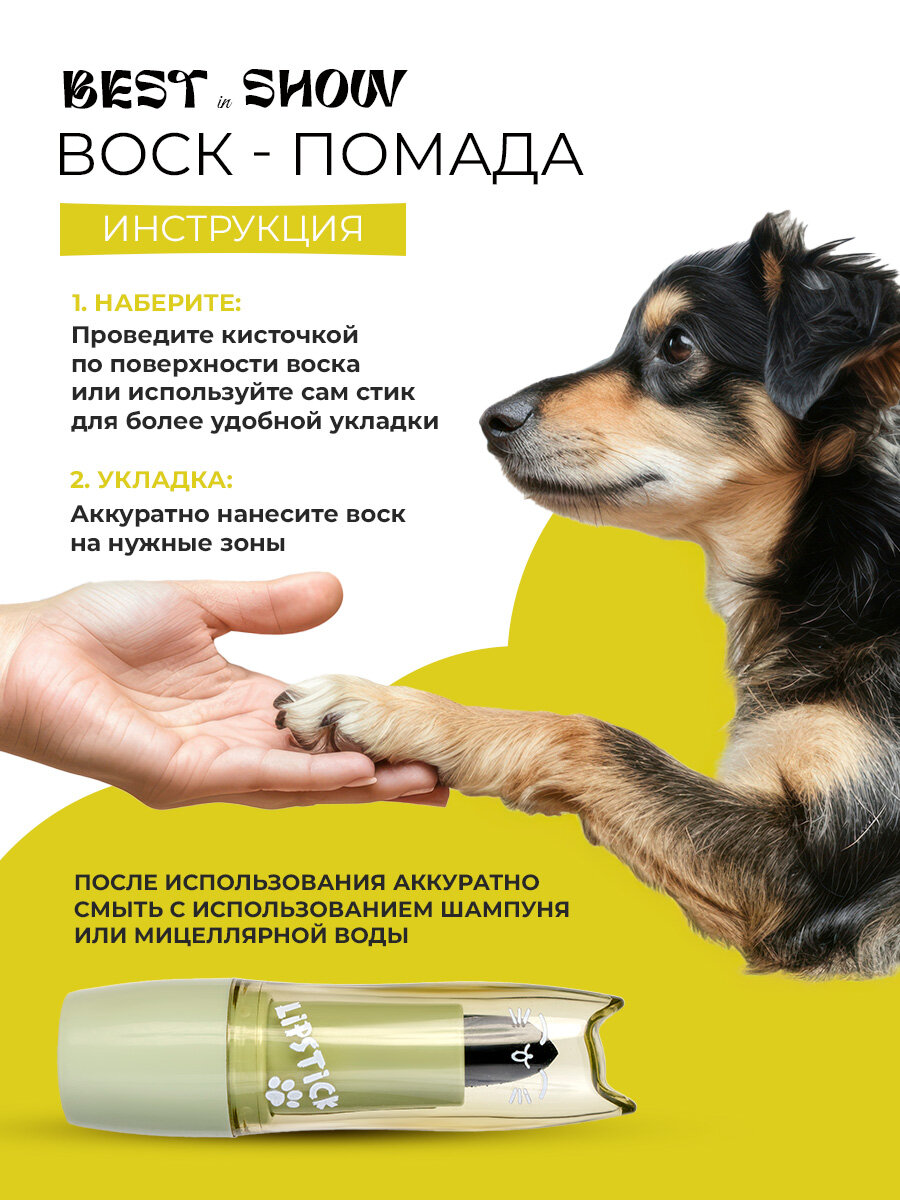 Воск-помада Best in Show для собак и кошек, уход за шерстью, 100% натуральный состав информация: