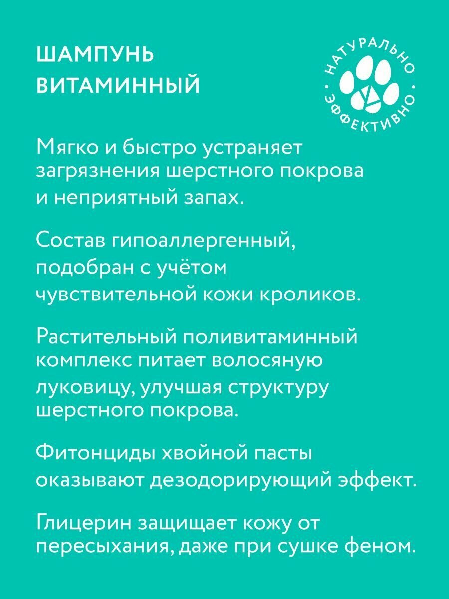Витаминный шампунь для грызунов и декоративных кроликов, 220 мл, VEDA информация: