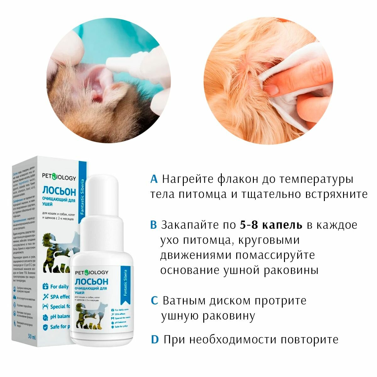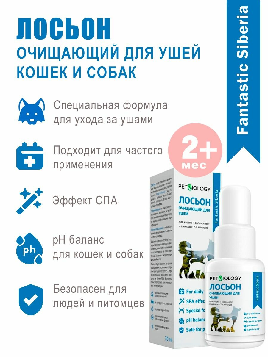 Очищающий лосьон PETBIOLOGY для ушей для собак и кошек, Сибирь, 30 мл информация: