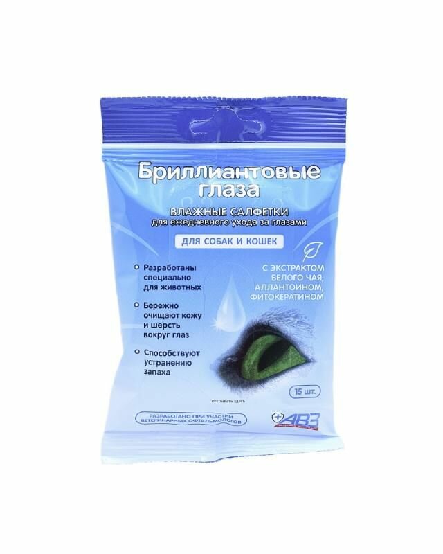 Влажные салфетки "Бриллиантовые глаза" для глаз домашних животных, 5 уп. по15 шт. информация: