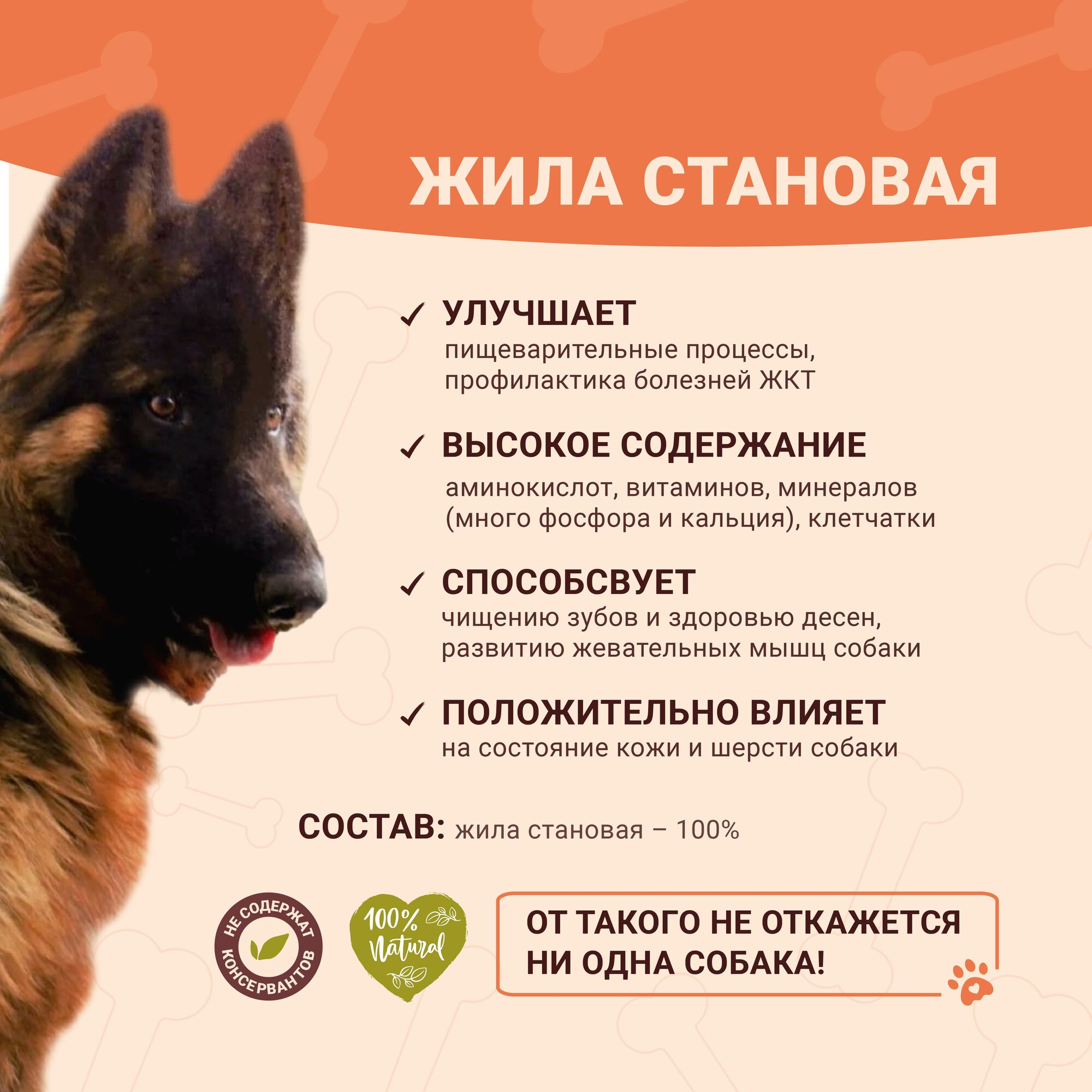 Жила становая XL (коса) 1шт. Сушеное натуральное лакомство для поощрения и дрессировки информация: