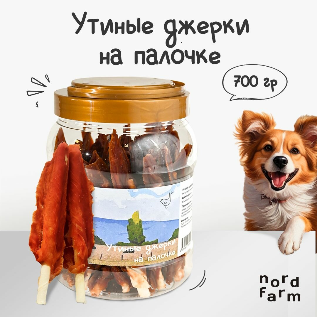 Лакомства для собак Nord Farm утиные джерки на палочке, 700 г информация: