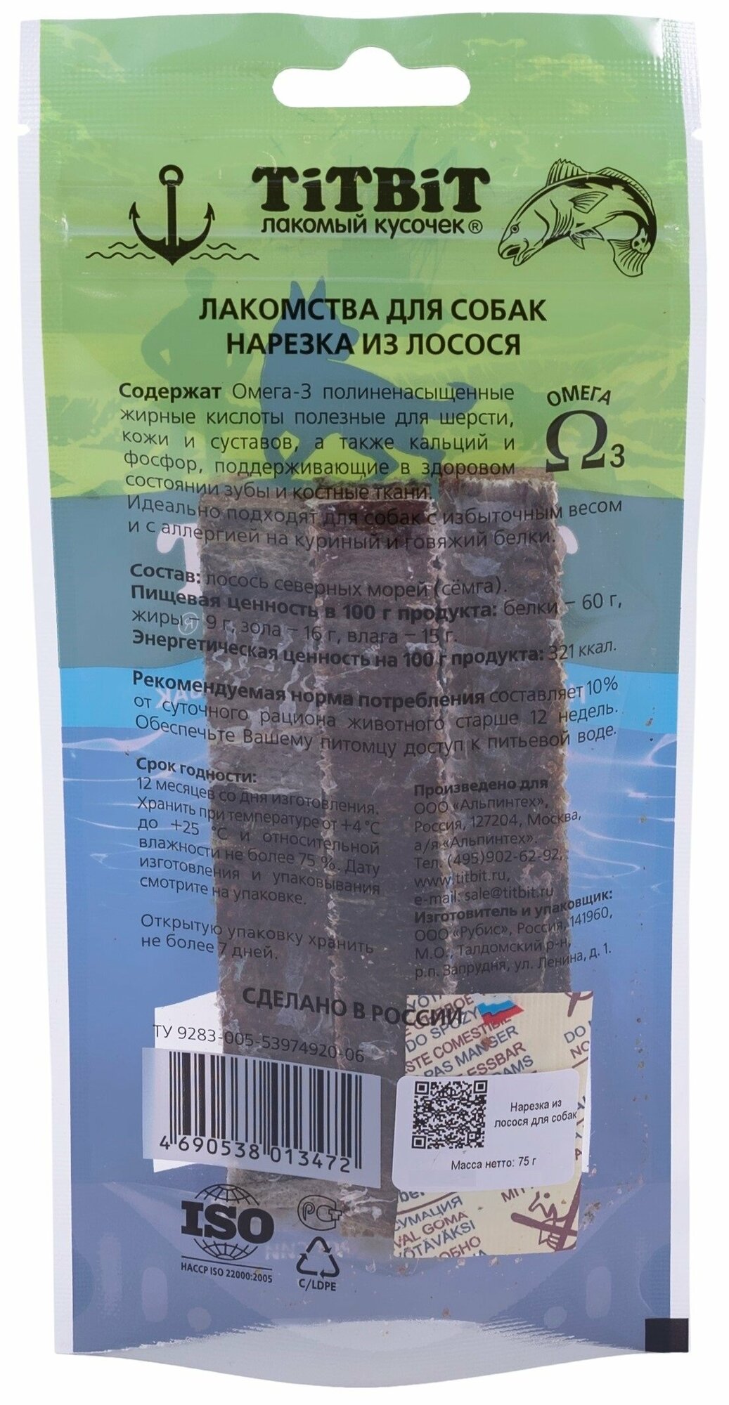 Лакомство TiTBiT баренцево море нарезка с лососем для собак (75 г) информация: