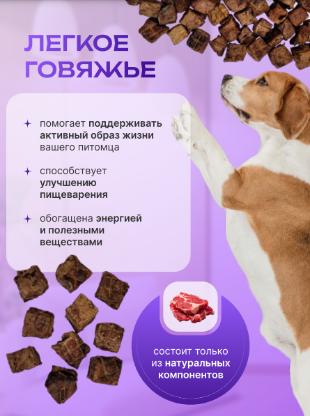 Легкое говяжье кусочками для собак 30 гр, лакомство для животных информация: