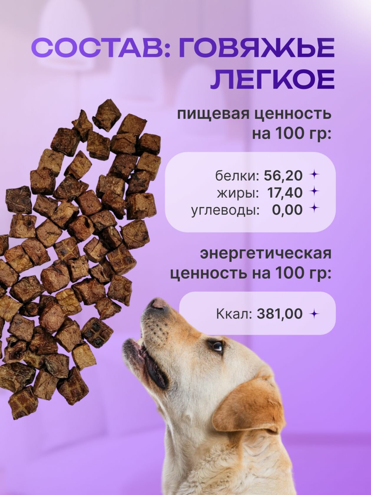 Отзывы на Легкое говяжье кусочками для собак 30 гр, лакомство для животных