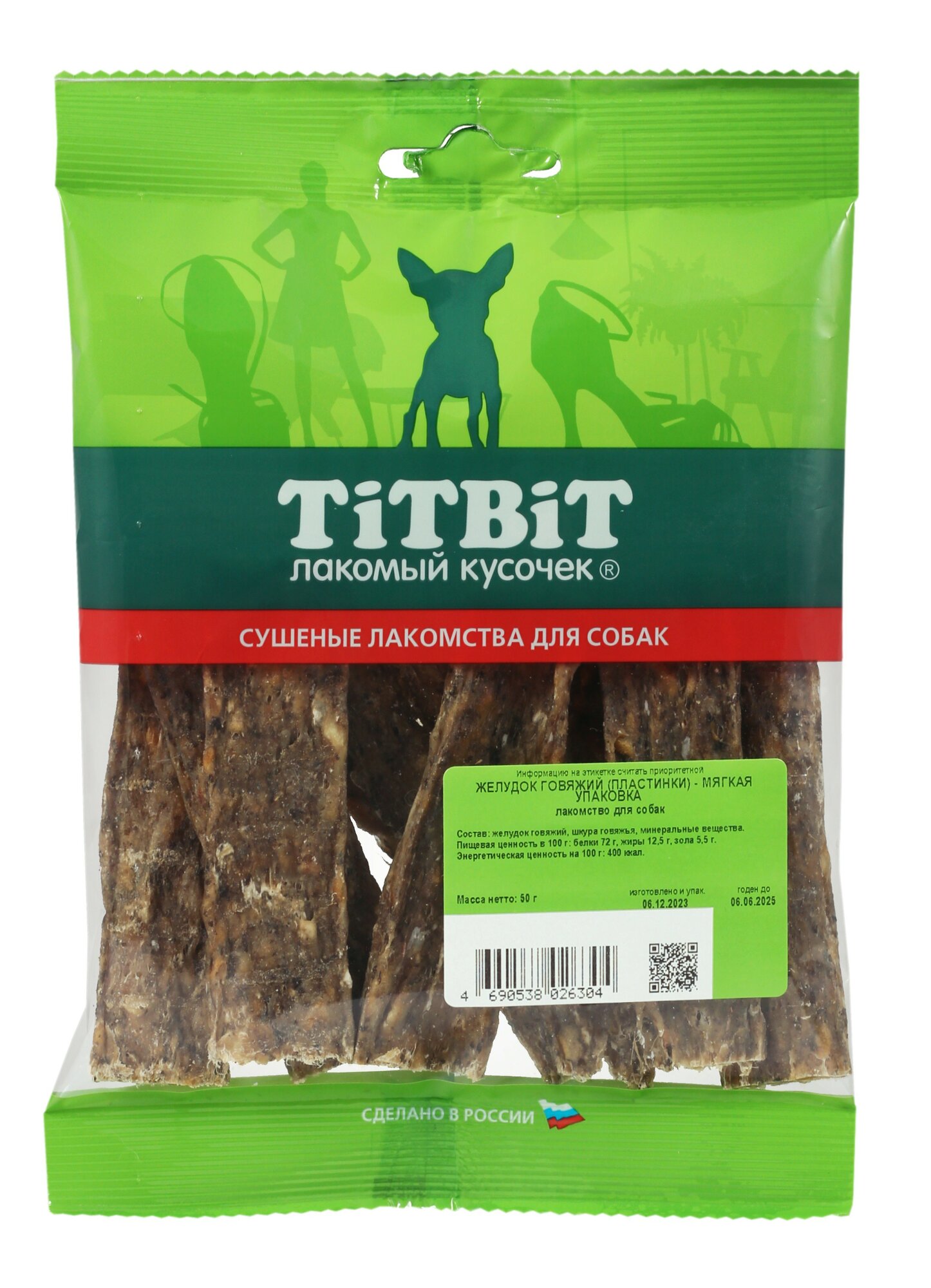 Лакомство для собак TiTBiT Желудок говяжий пластинки - мягкая упаковка информация: