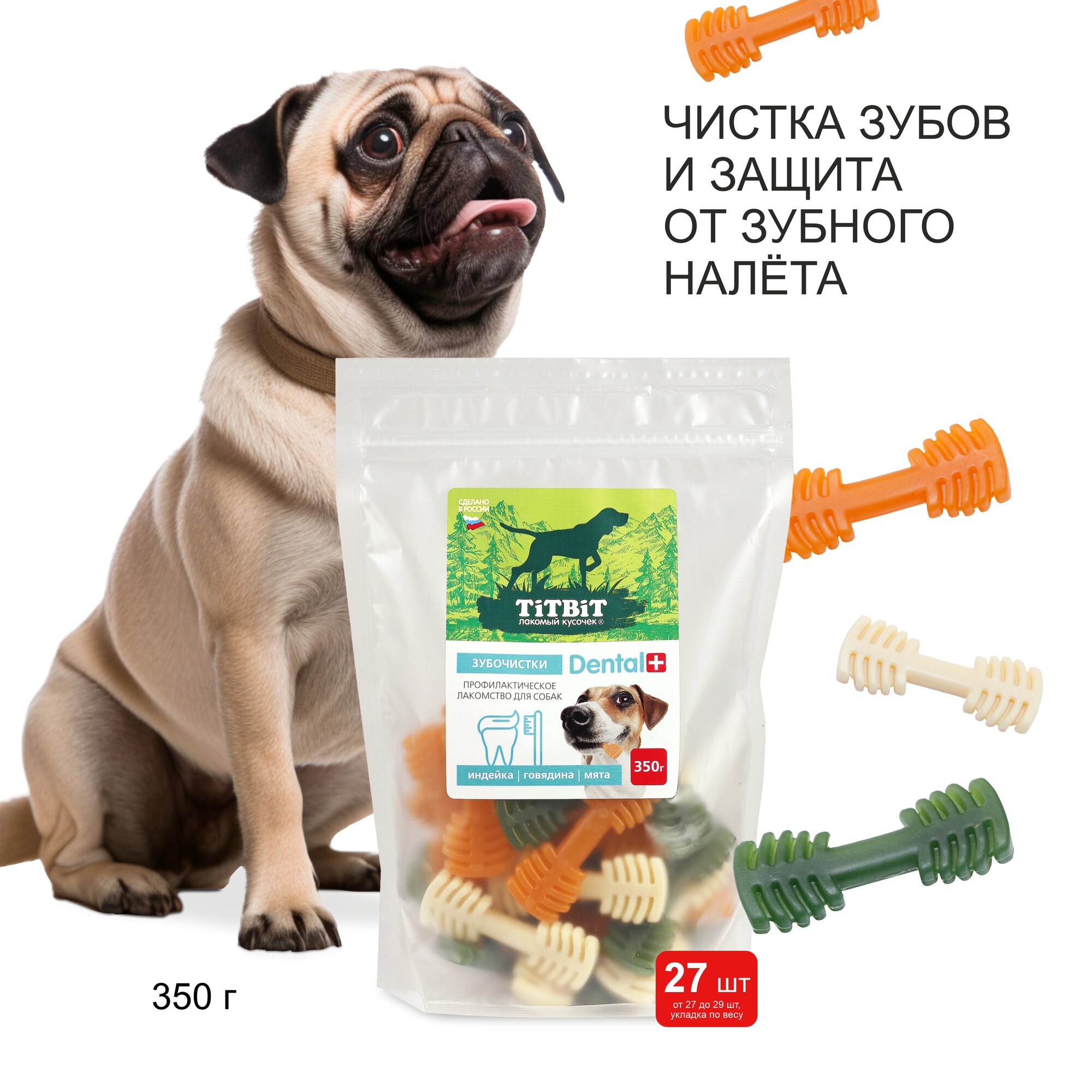 Лакомство для собак TiTBiT ДЕНТАЛ+ Зубочистки с мясом индейки, говядиной и мятой, 350г. информация: