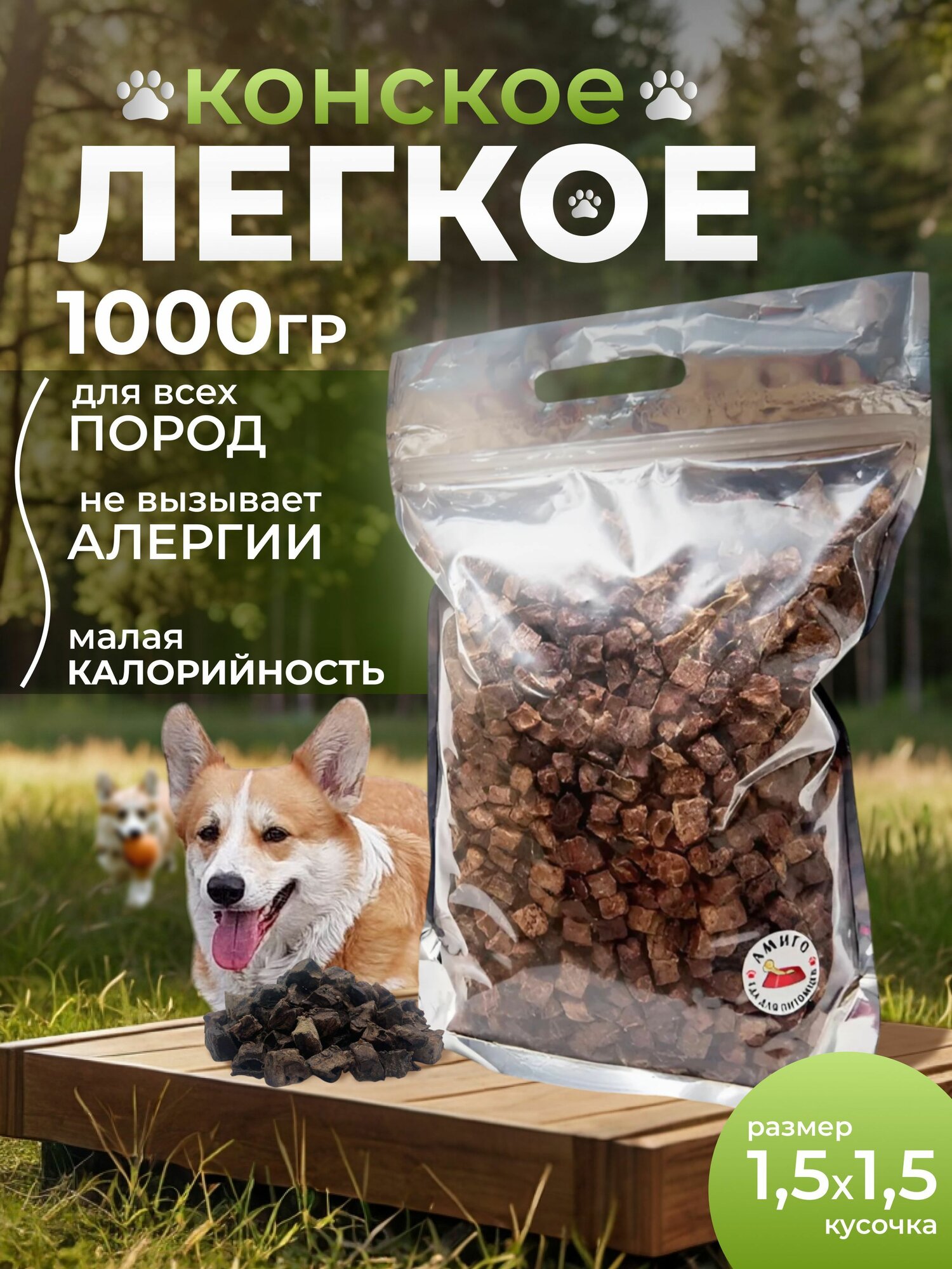 10 цен на Лакомство для собак - Лёгкое конское сушеное 1,5х1,5 см, 1000 гр