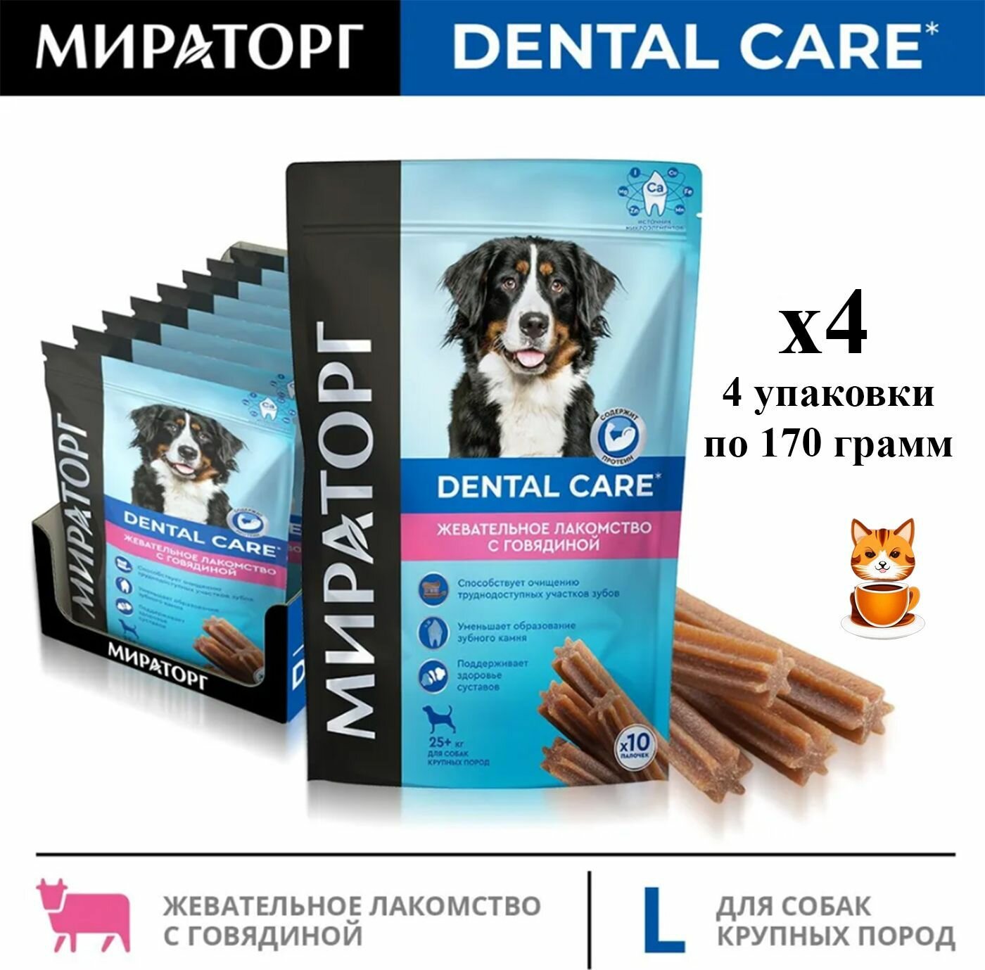 Жевательное лакомство мираторг DENTAL CARE 170гр 4шт для собак крупных пород, говядина информация: