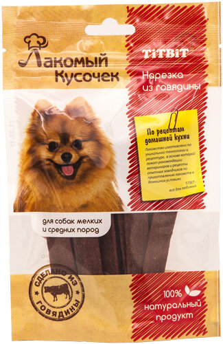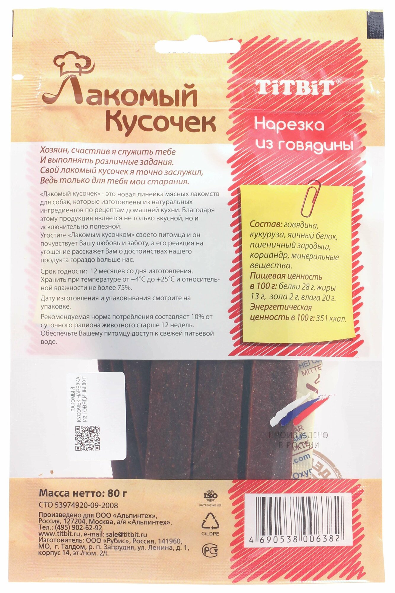 Лакомство TiTBiT Лакомый кусочек Нарезка из говядины для собак (80 г) информация: