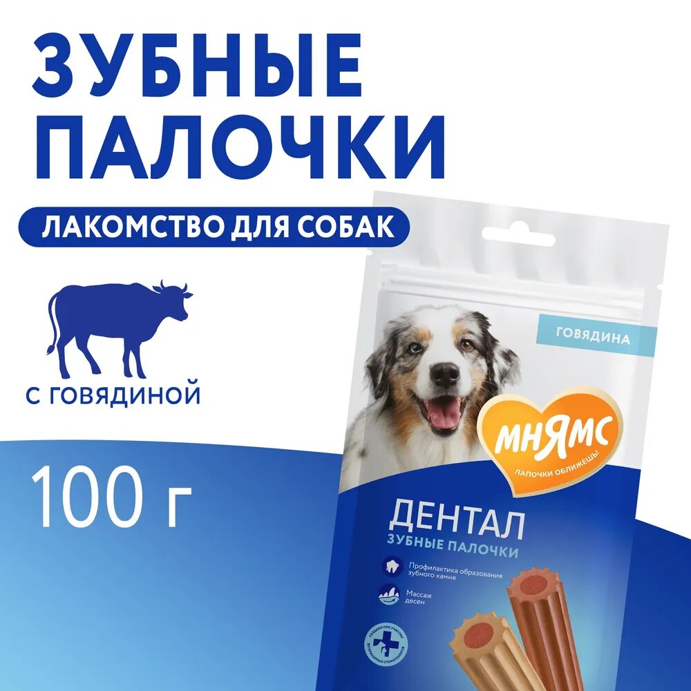 Лакомство Мнямс ДЕНТАЛ для собак Зубные палочки с говядиной, 4 шт х 100 гр 775 ₽