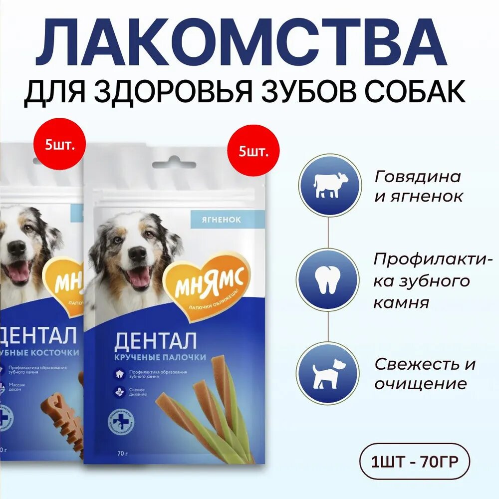 Набор лакомств №6 Мнямс ДЕНТАЛ для собак Зубные косточки с говядиной и ягненком, 10 шт х 70 гр (2 вида по 5 шт) информация: