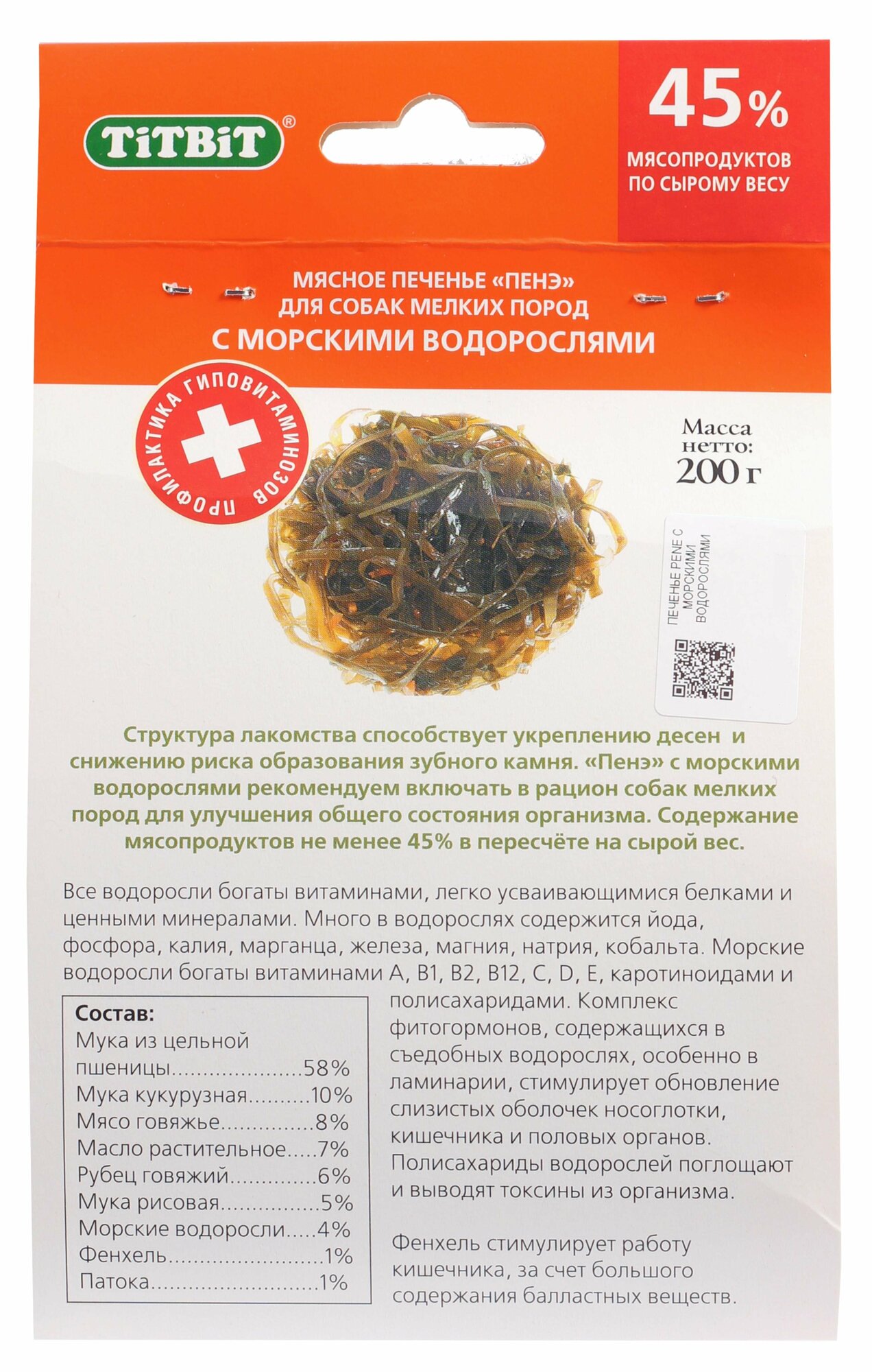 Лакомство TiTBiT Печенье Pene с морскими водорослями для собак (200 г) информация: