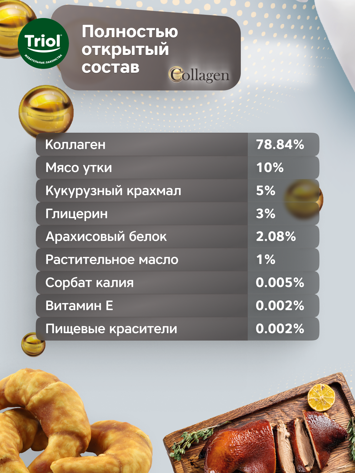 Лакомства для собак «Рогалики коллагеновые с мясом утки», 90г (уп. 3шт.), серия Collagen информация: