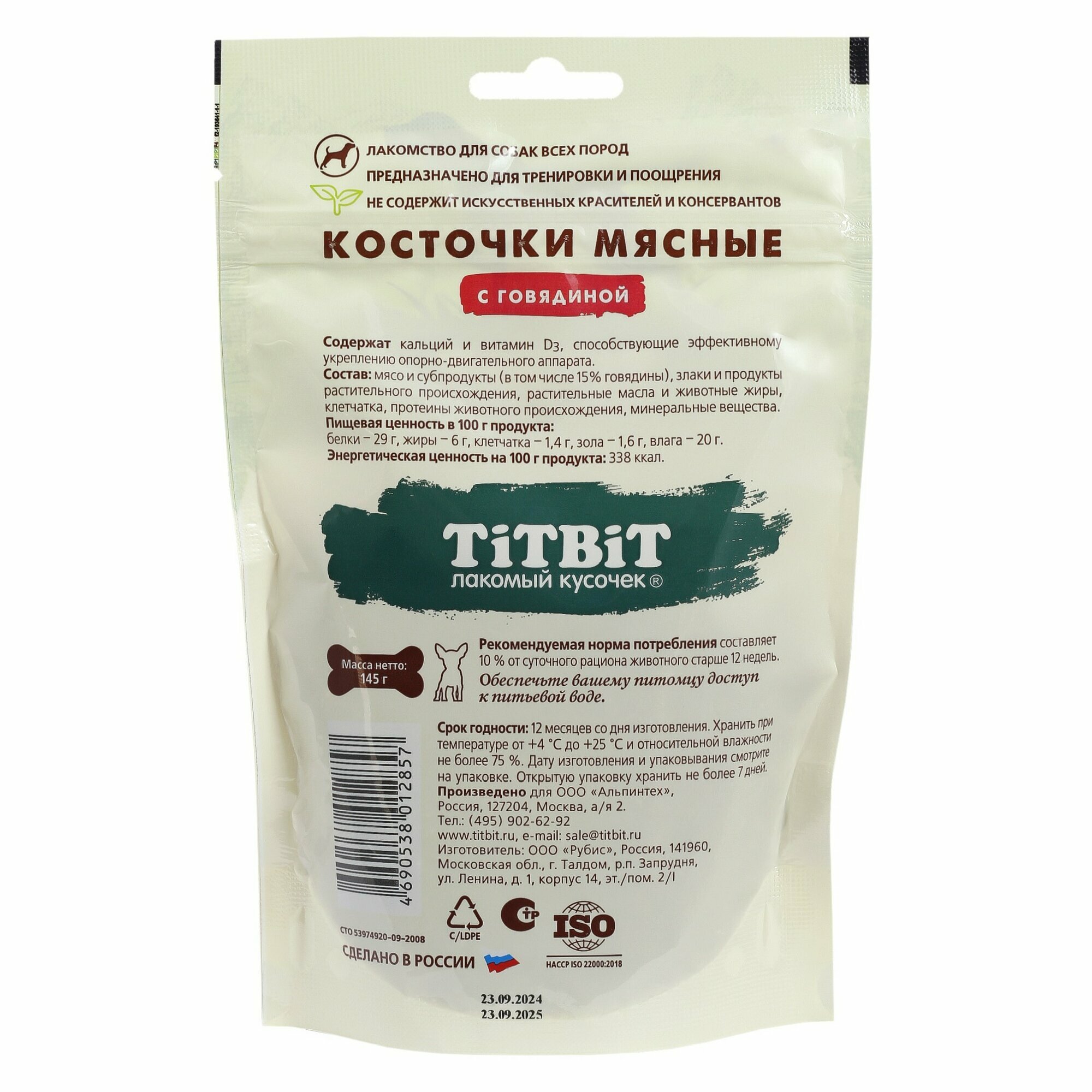 Лакомство TiTBiT Косточки мясные с говядиной для собак (145 г) информация: