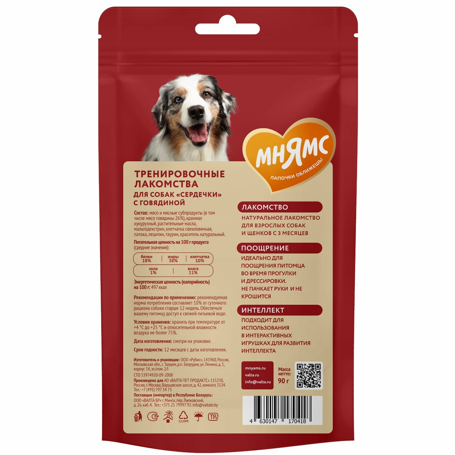 Лакомства тренировочные Мнямс для собак "Сердечки" с говядиной 90г*5 шт информация: