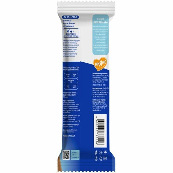 Лакомство Мнямс дентал для собак "Зубной снек" с говядиной 95г информация: