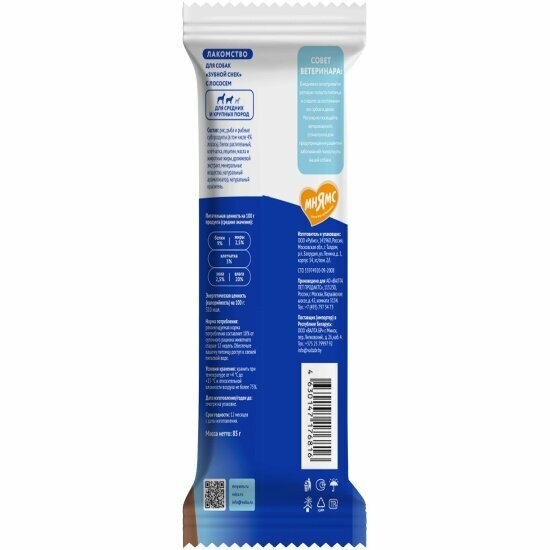 Лакомство Мнямс дентал для собак "Зубной снек" с лососем 85г информация: