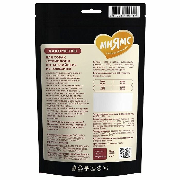 Мнямс Лакомство для собак "Стриплойн по-английски" 6шт 75 г информация: