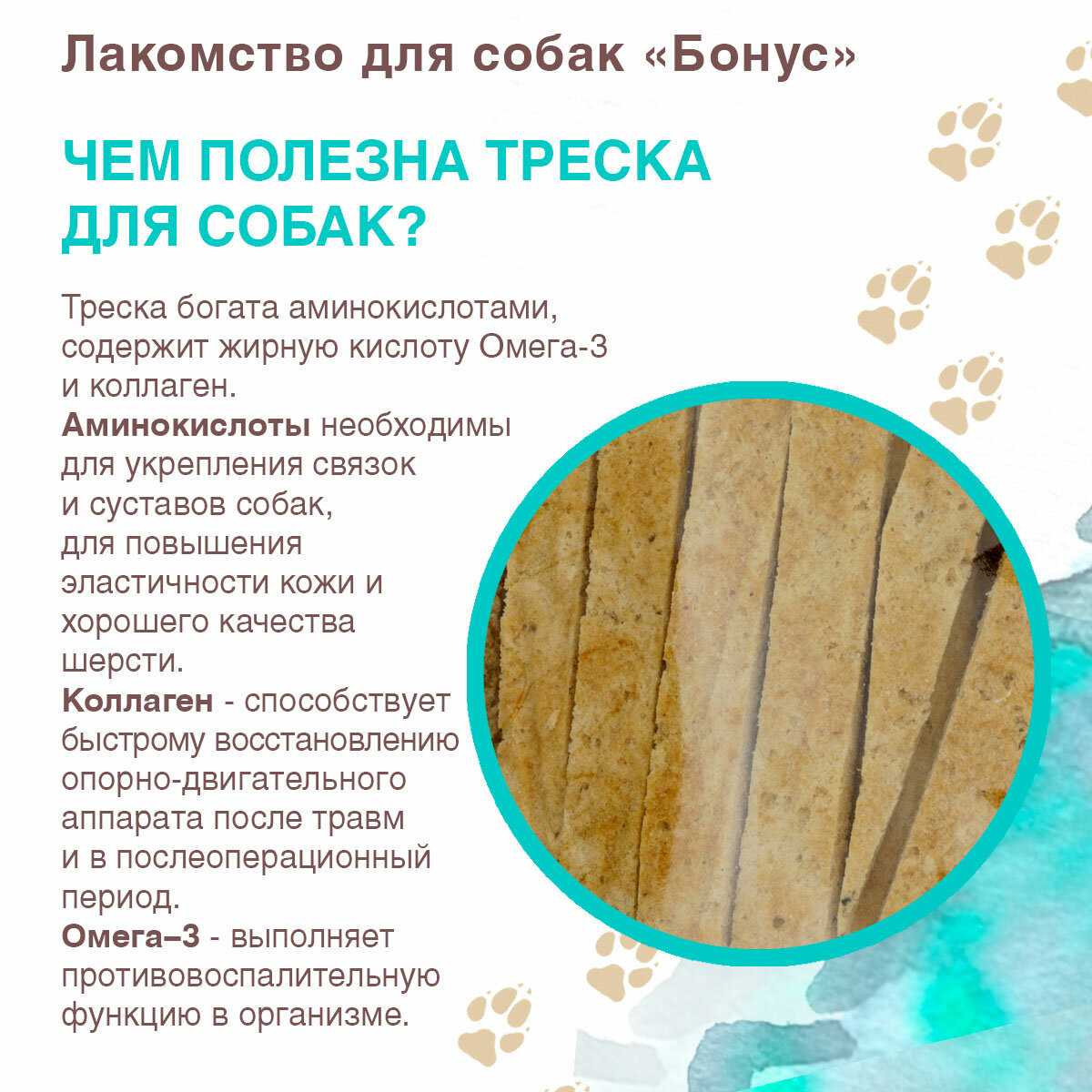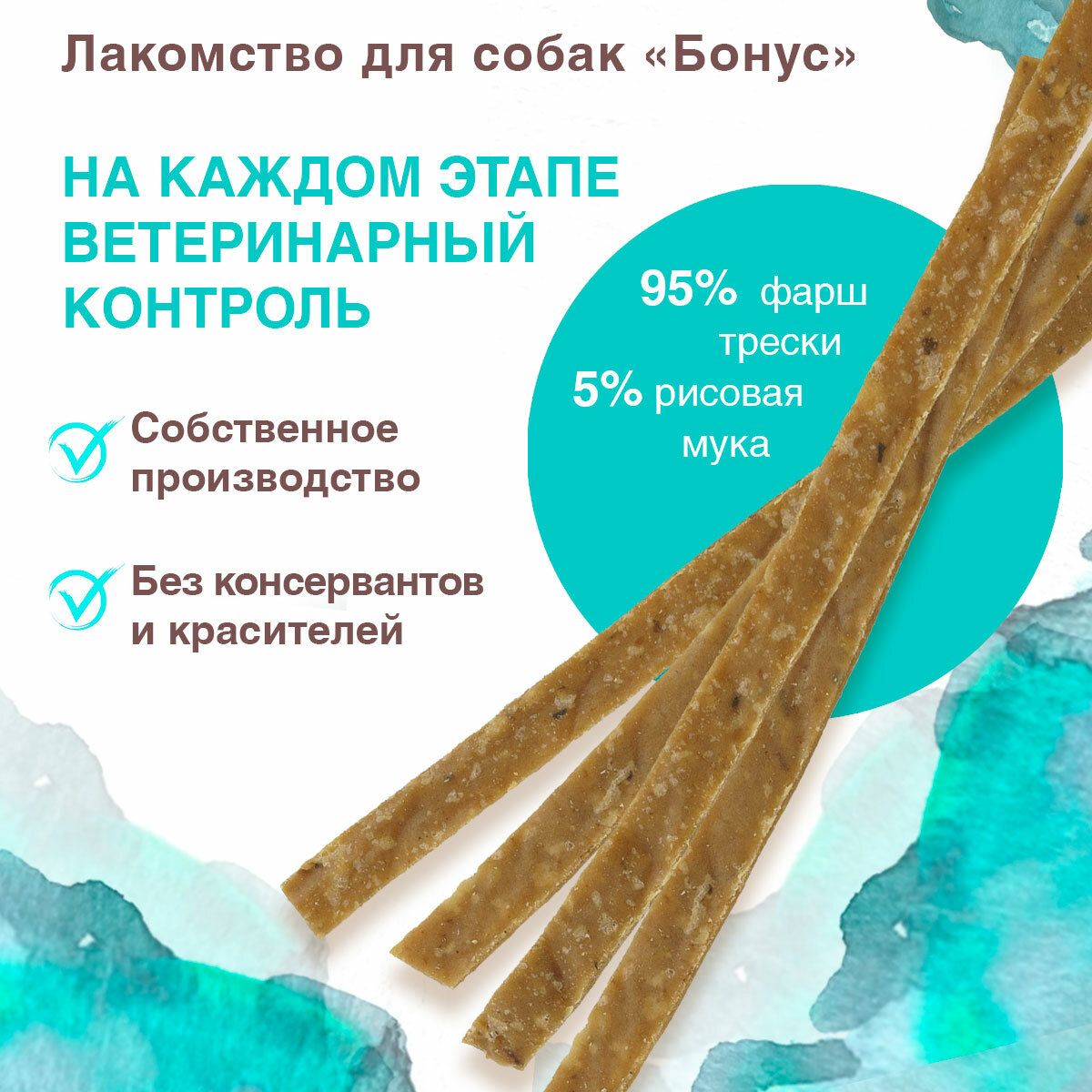 Лакомства для собак бонус полоски Треска 100г информация: