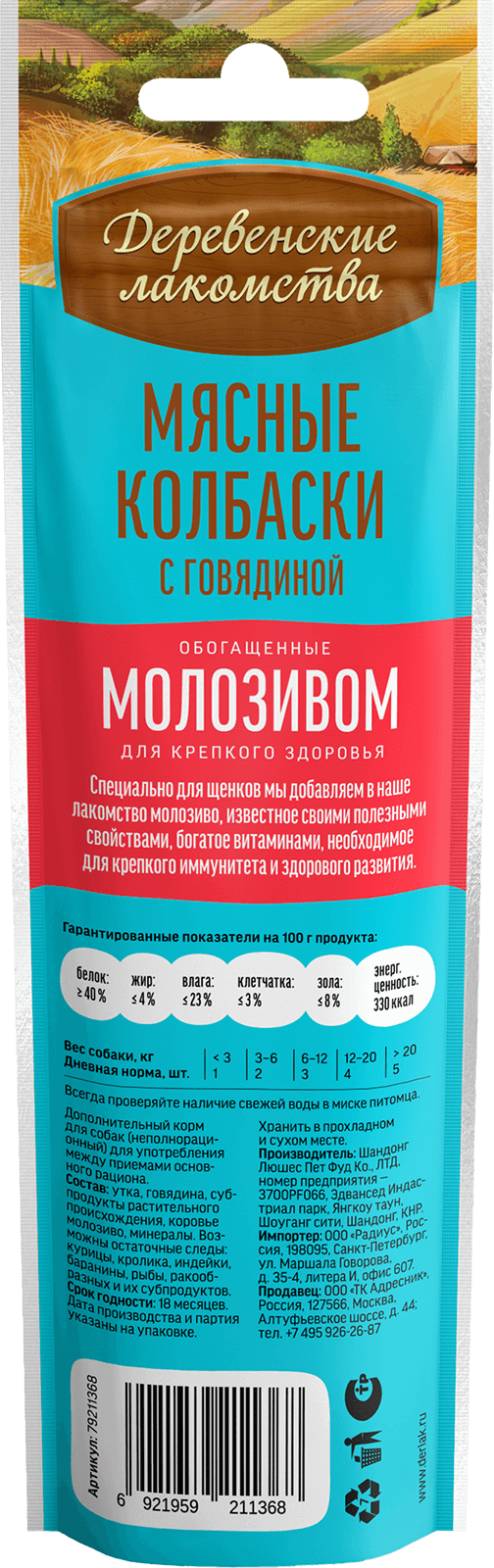 Деревенские лакомства для щенков 45г мясные колбаски, с говядиной и молозивом информация: