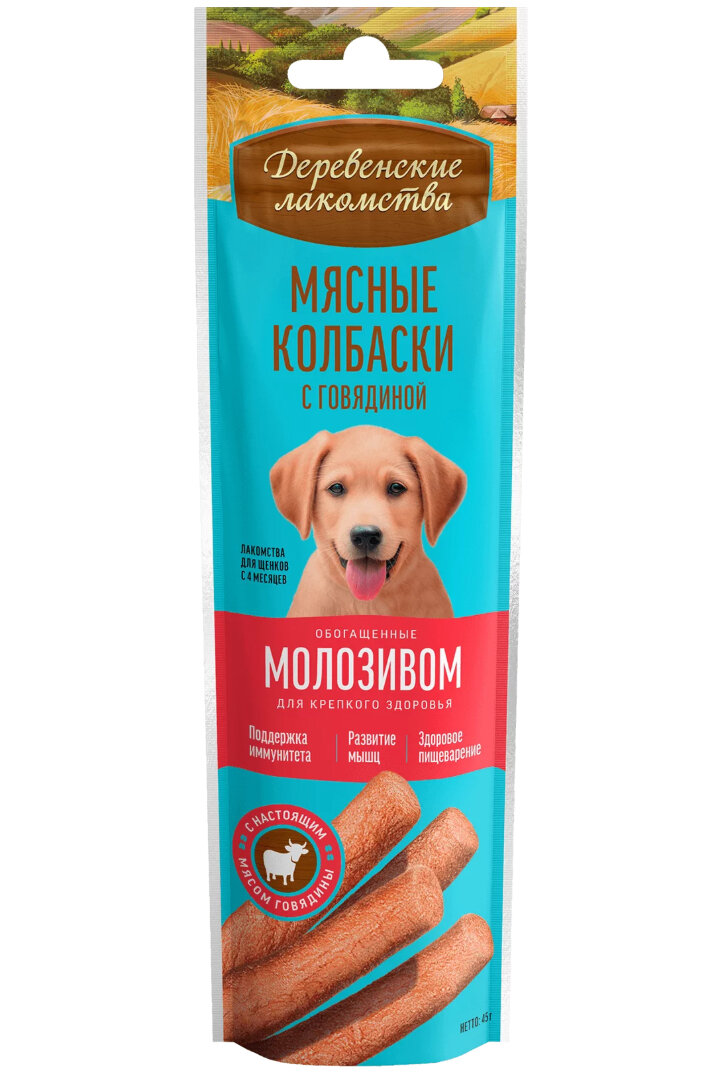 Лакомства деревенские для щенков мясные колбаски с говядиной обогащенные молозивом 45 гр NEW 1 шт 334 ₽
