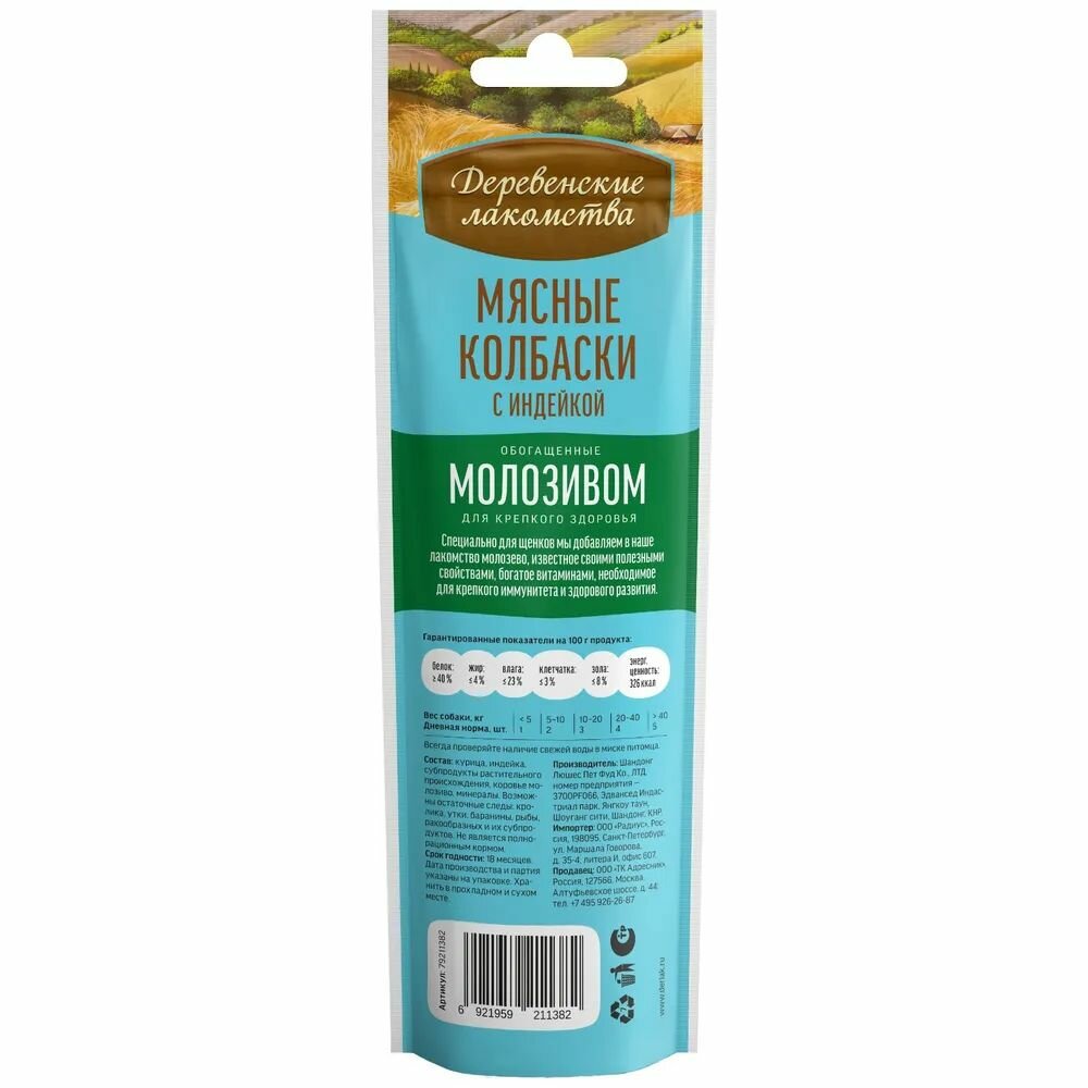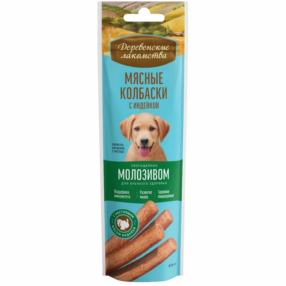 Деревенские лакомства для щенков Мясные колбаски с индейкой и молозивом 45г (10 штук) 2 025 ₽