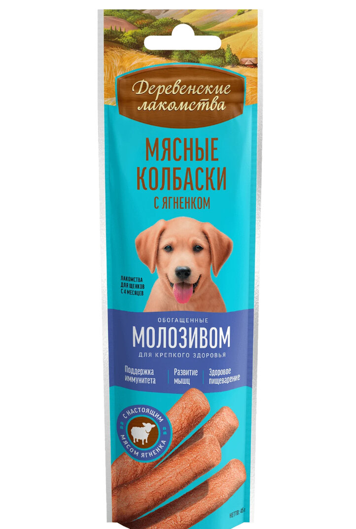Деревенские лакомства 45г мясные колбаски для щенков с 4 месяцев с ягненком обогащенные молозивом 381 ₽