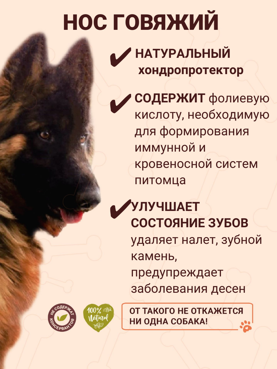 10 цен на Нос говяжий крупная нарезка 500г Сушеное натуральное лакомство для поощрения и дрессировки