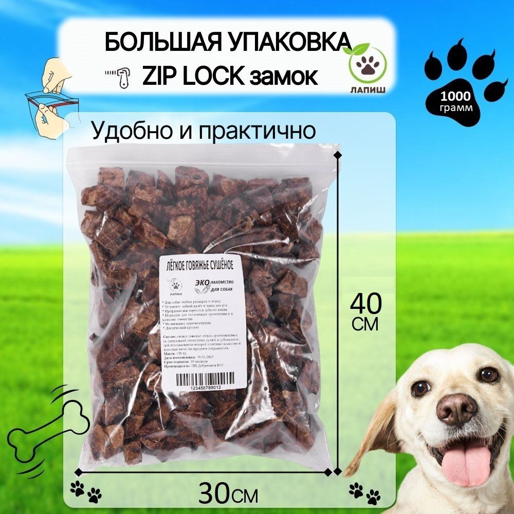 10 цен на Лапиш легкое говяжье сушеное 1000 гр, корм лакомство для собак, кошек и других питомцев