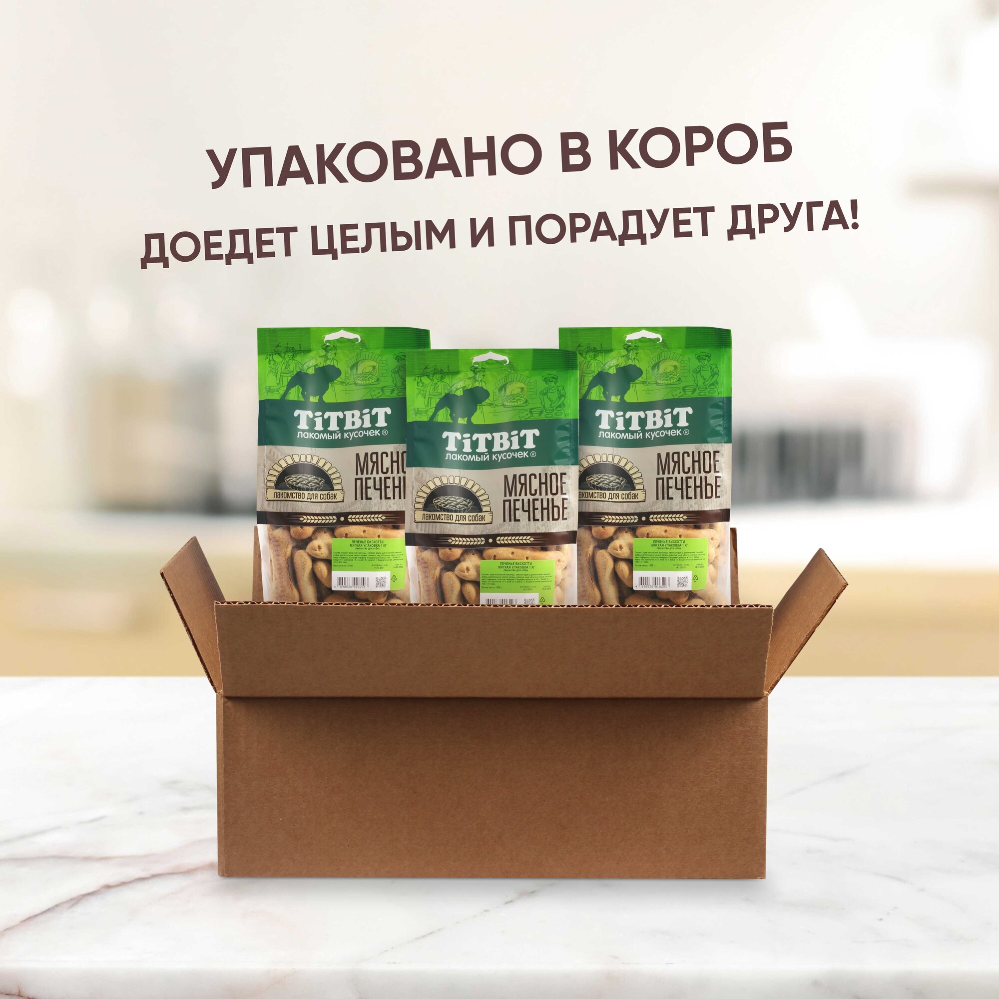 Комплект лакомств TiTBiT для собак Печенье Бискотти 1кг х 3 шт с говядиной информация:
